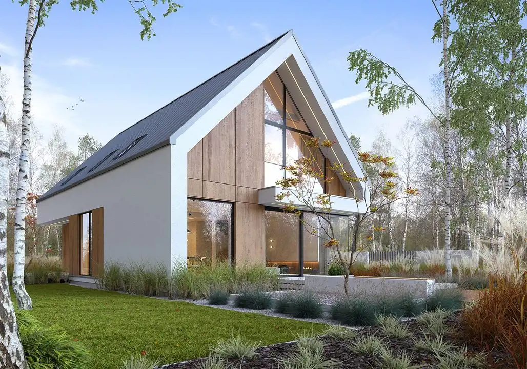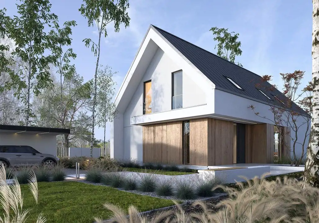 Budynek cechuje min. nowoczesna forma, ogrom przestrzeni na parterze- ponad 45 metrów otwartej przestrzeni oraz funkcjonalność poddasza.