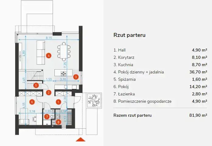 - kuchnia 8,70 mkw.;