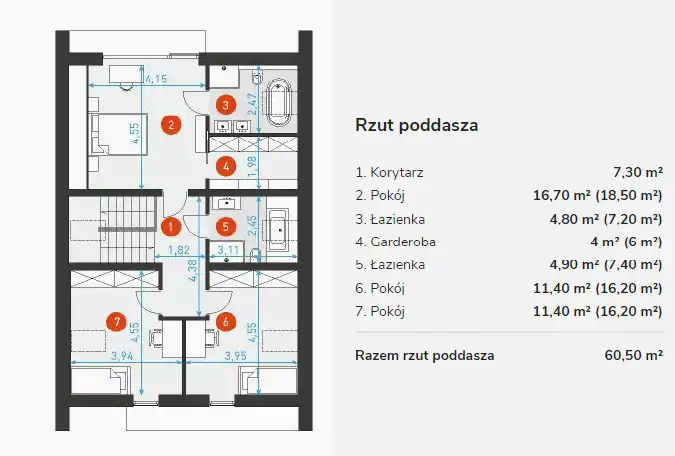 - sypialnia 3: 11,40m.kw. (16,20m.kw.);