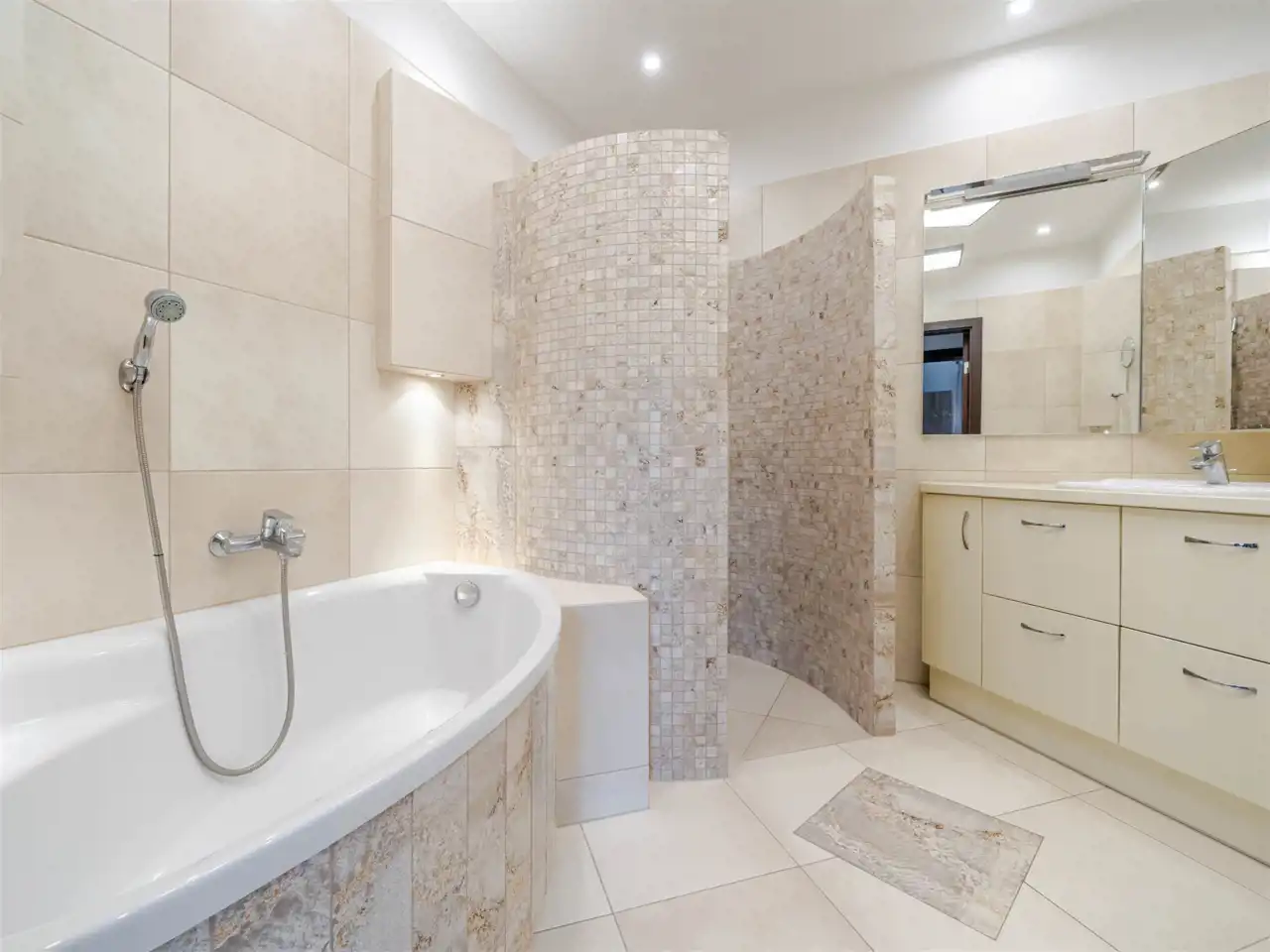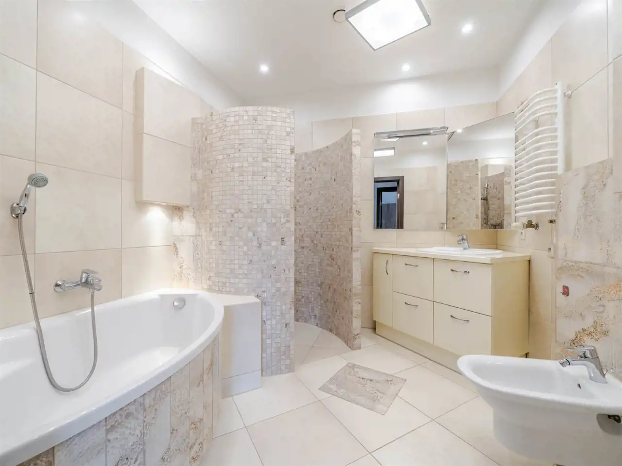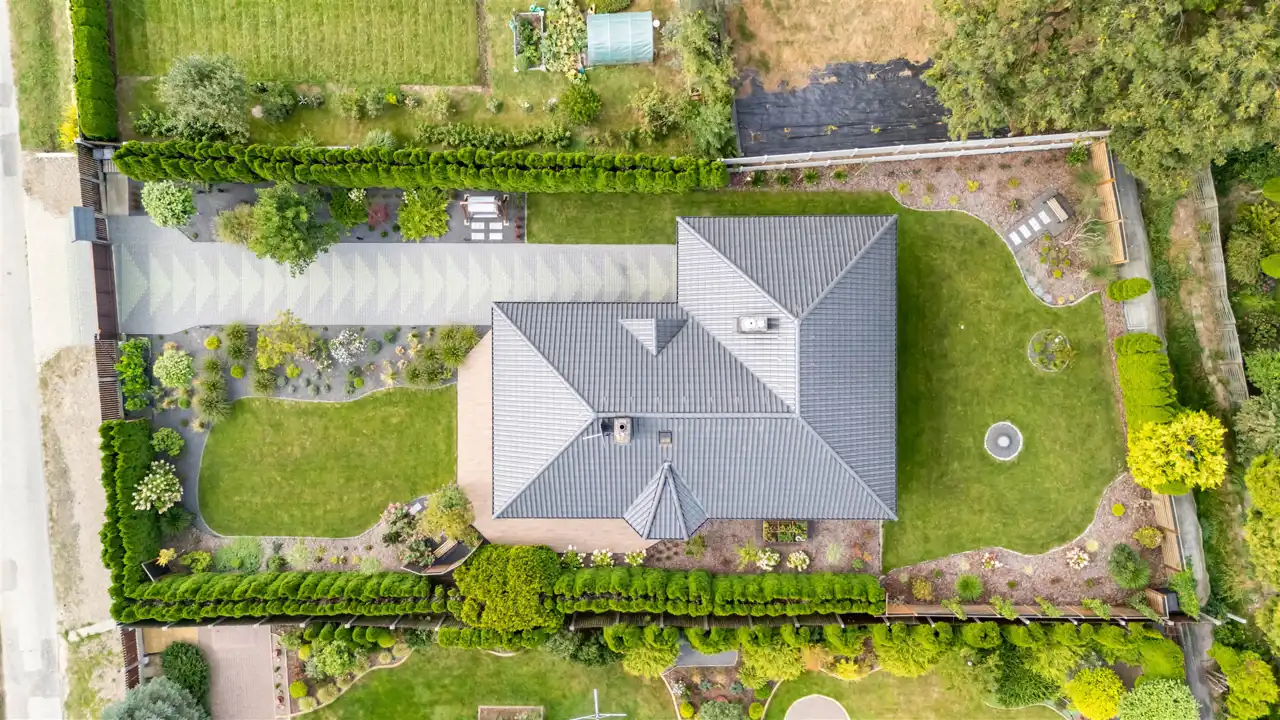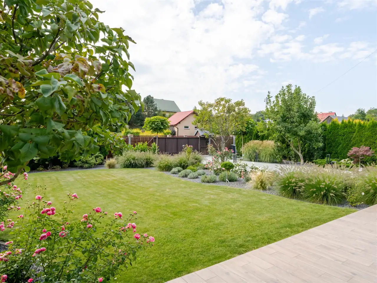 Dom wyposażony w szereg udogodnień - mamy tu rekuperację, pozwalającą na oszczędności, ogrzewanie podłogowe, tam gdzie na podłogach jest gres, jest światłowód, system do nawadniania ogrodu i osobny do jego oświetlenia, jest centralny odkurzacz i warstwa ochronna zabezpieczająca ogród przed kretami.