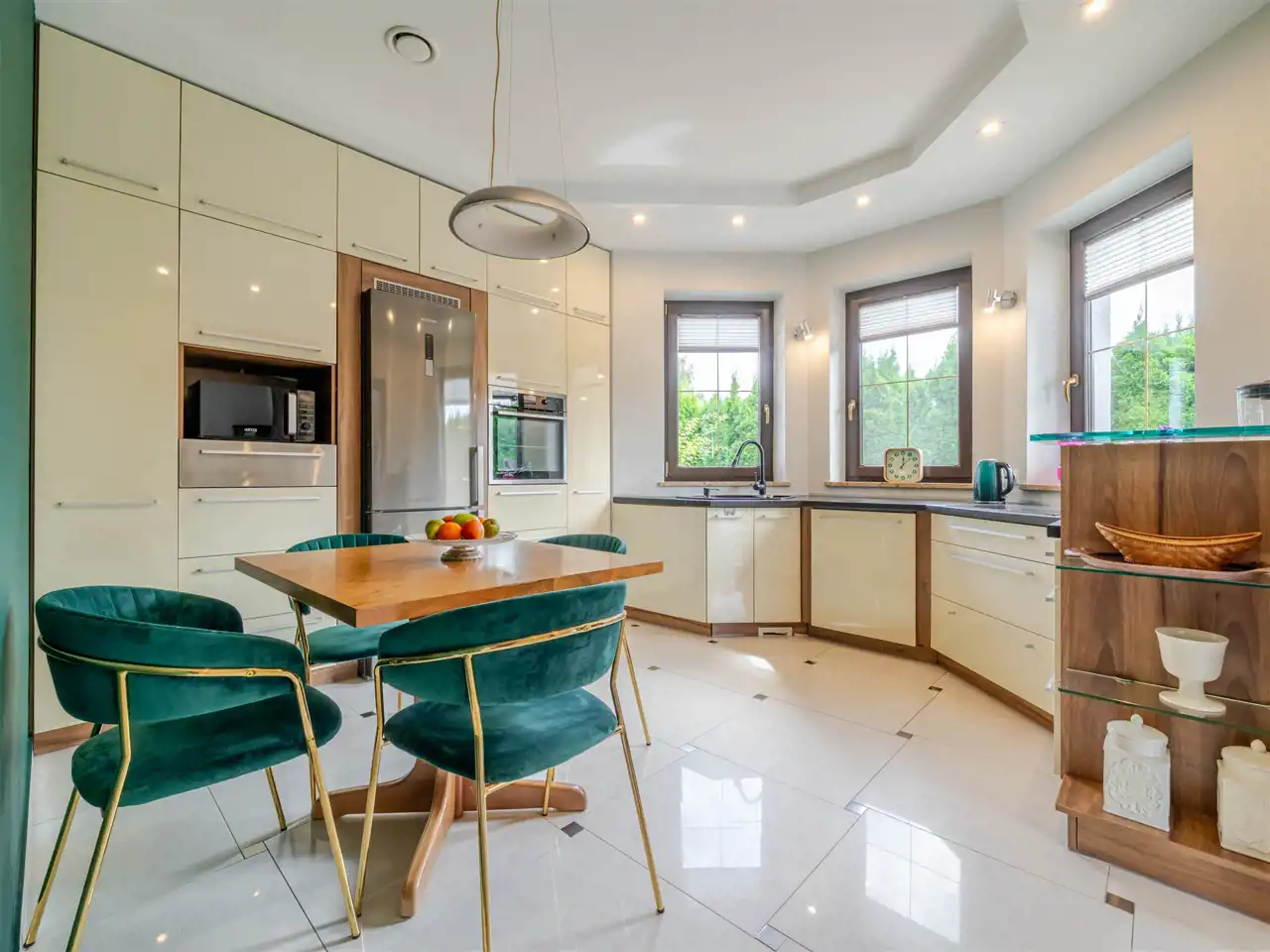 Dom urządzony gustownie, materiałami wysokiej jakości, zadbany i dobrze utrzymany.