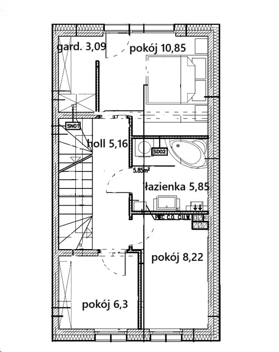 - łazienka 5,85 m.kw.;