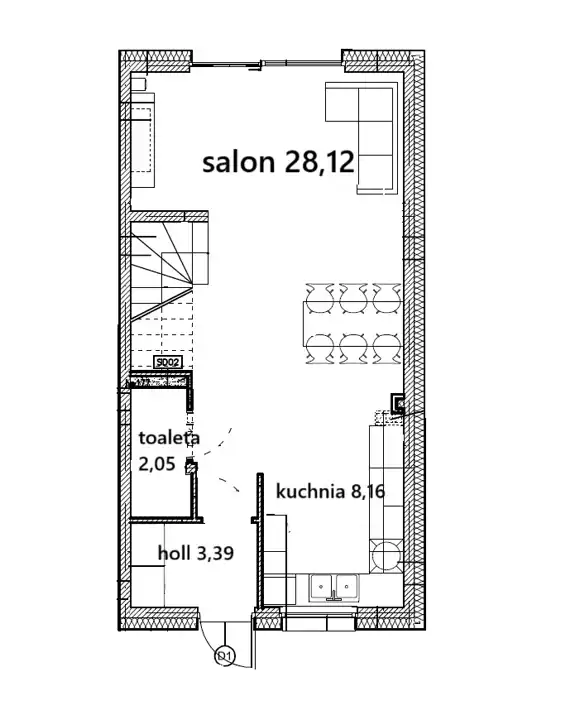 - salon z jadalnią 28,12 m.kw.: