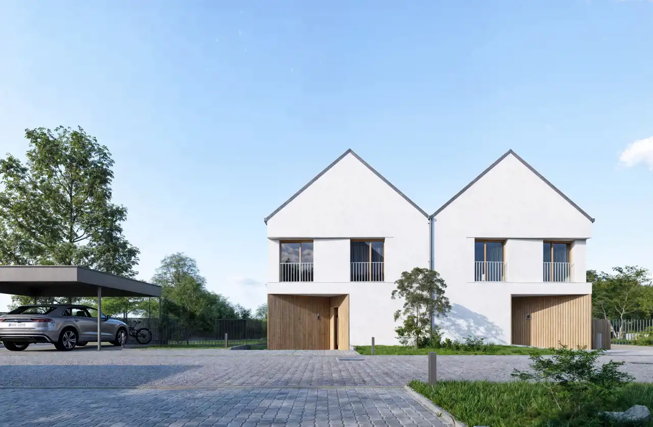Domy o powierzchni użytkowej 117,54 m² + poddasze koło 40 m2 (pow. całkowita 157,54 m²) położone są na działce o powierzchni ok. 5 arów, oferując przestronną przestrzeń na wspólne spędzanie czasu na świeżym powietrzu. Przy każdym domu będzie również nowoczesna wiata na 2 samochody .