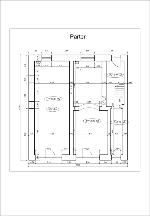 - elewacja północna: tynk wewnętrzny cementowy, mur ceglany (60 cm na parterze, 50 cm na piętrze), styropian 8 cm, tynk zewnętrzny,
