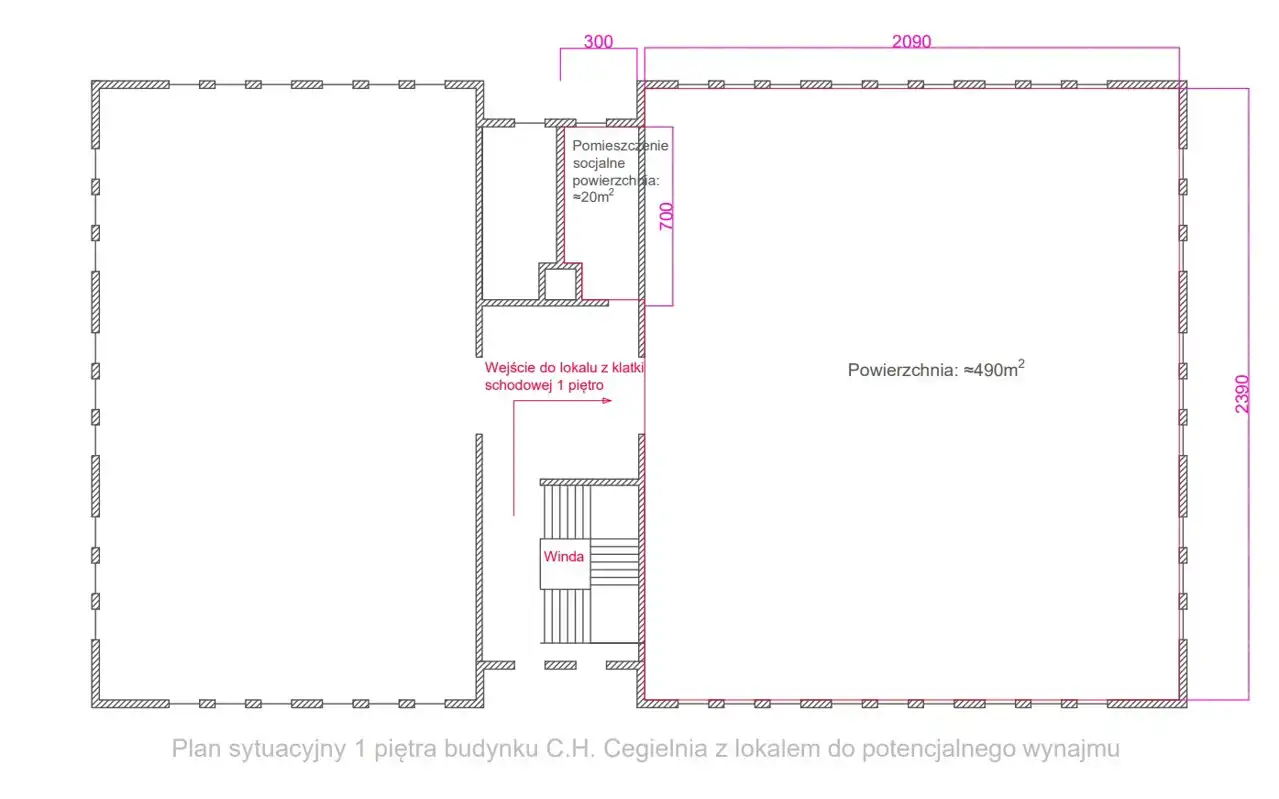 Lokal usługowo-handlowy na I piętrze, powierzchnia 490 m2. Skała