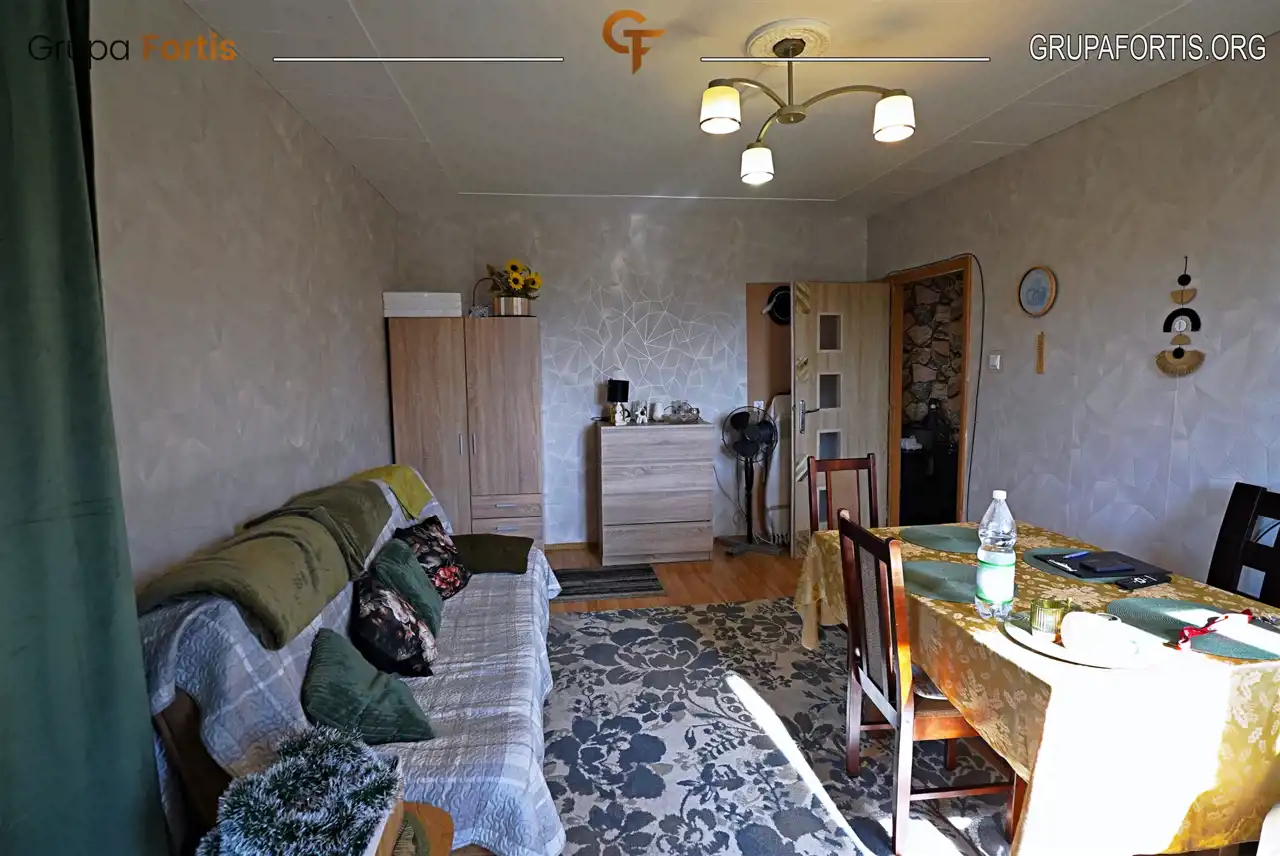 - Układ: 2 przestronne pokoje, przedpokój, kuchnia oraz łazienka.