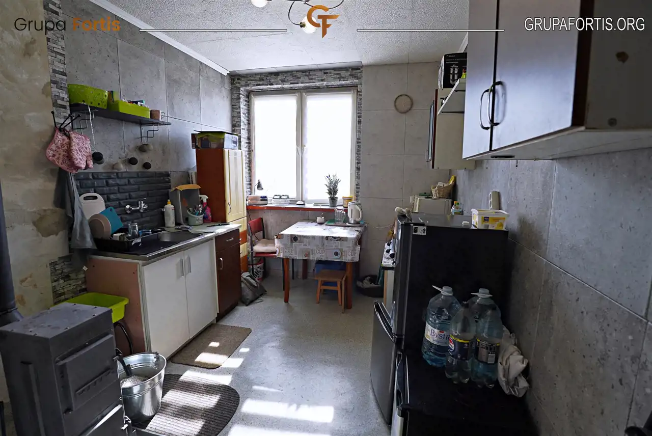 - Ogrzewanie: Obecnie: piec typu „koza” w kuchni oraz grzejniki elektryczne. Mieszkanie jest przygotowane pod instalację pieca gazowego na terenie obiektu znajdują się zbiorniki gazowe zasilające budynek