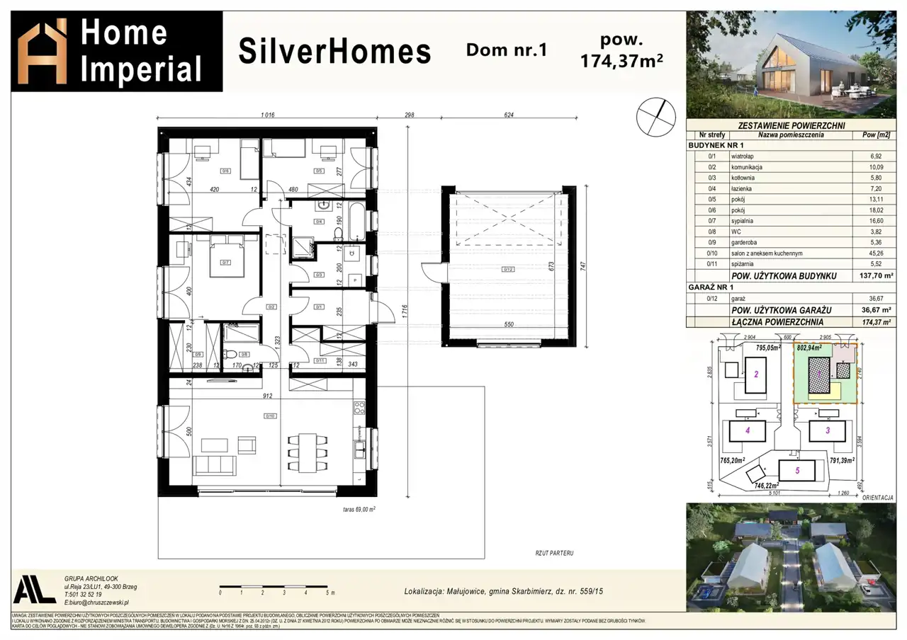 Na sprzedaż przestronny, komfortowy dom parterowy z garażem, o łącznej powierzchni 174,37 m² (w tym garaż 36,67 m²). Nieruchomość została zaprojektowana z myślą o wygodzie i funkcjonalności, oferując układ pomieszczeń, który sprawdzi się zarówno dla rodzin, jak i osób poszukujących przestrzeni i nowoczesnych rozwiązań.