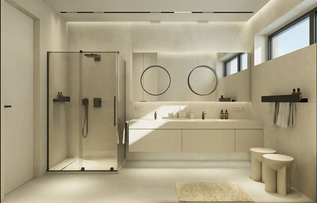 - mikrobeton na całej podłodze (kolor do wyboru)