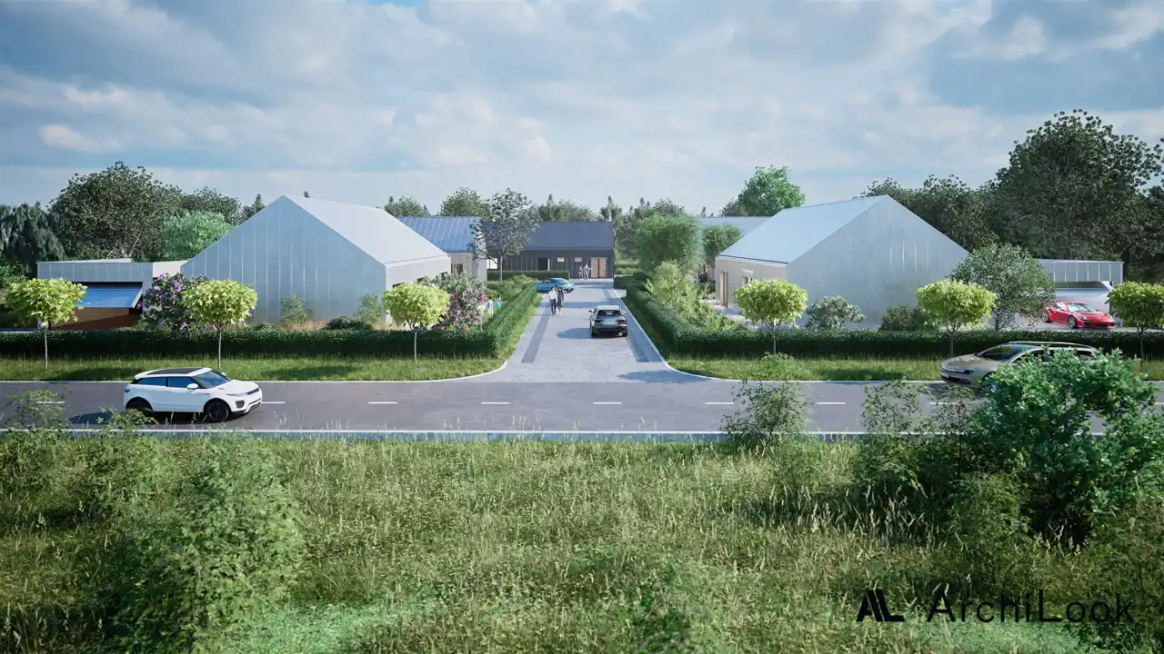Otoczenie nieruchomości zostanie starannie zagospodarowane – trawniki, nasadzenia i eleganckie, energooszczędne oświetlenie stworzą przyjemny klimat oraz estetyczne, nowoczesne otoczenie.
