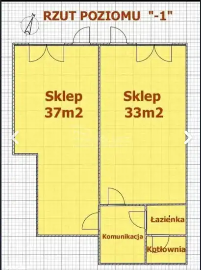 Budynek w części parterowej i podpiwniczeniu mieści 4 lokale usługowo - handlowe z osobnymi wejściami z zewnątrz. Do każdego lokalu przynależy łazienka i pomieszczenie socjalne. Na tym poziomie znajduje się także kotłownia. Łączna powierzchnia części usługowej wynosi 136,7 m2. Aktualnie wszystkie lokale są wynajęte generując regularnie dochód.