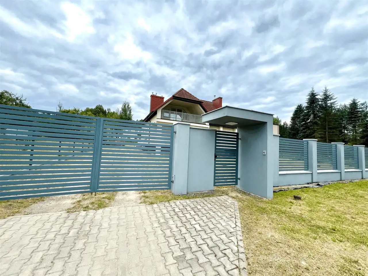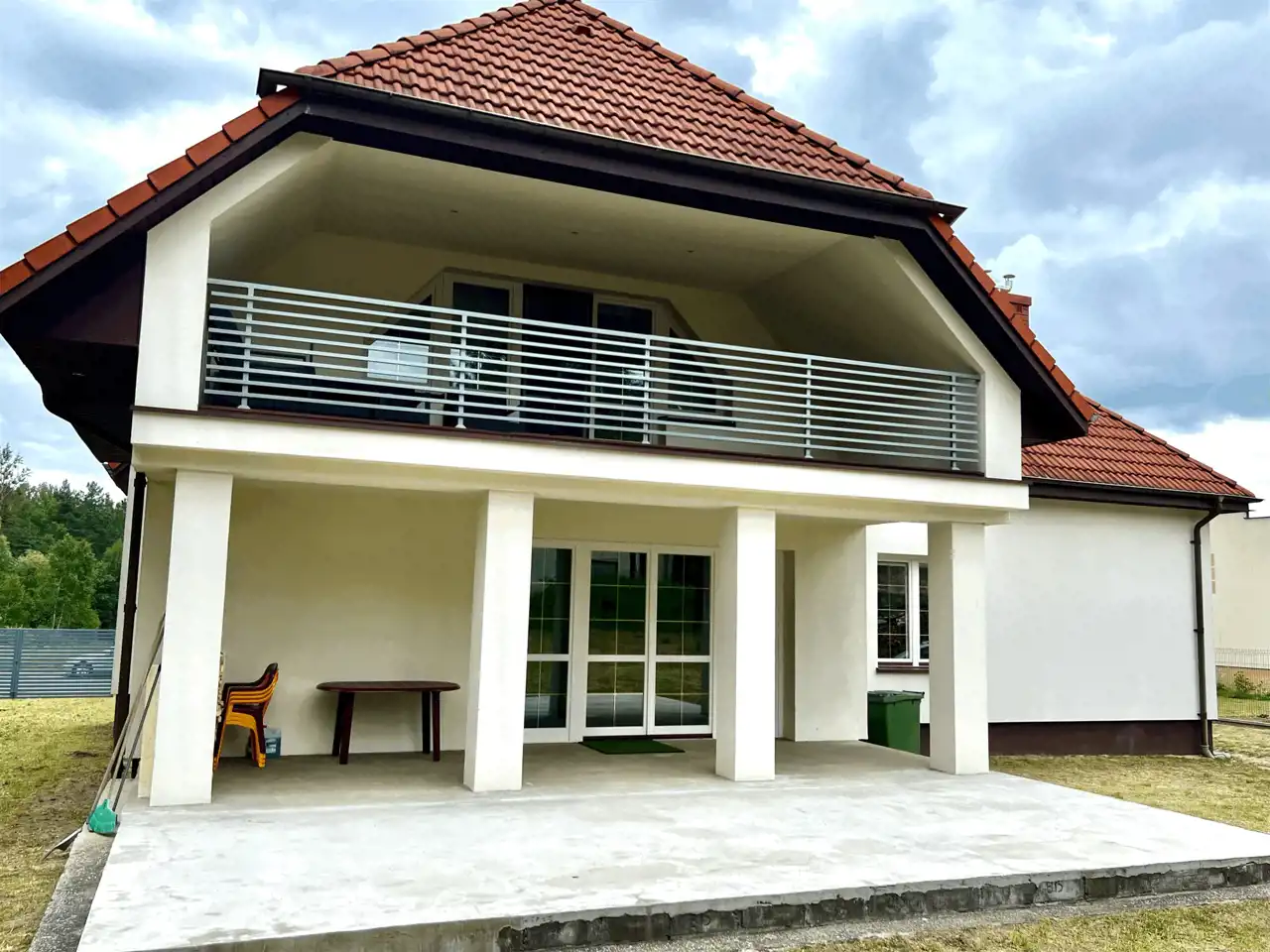Dom o łącznej powierzchni użytkowej 180 m2 położony na działce o powierzchni 6439 m2 w otoczeniu pięknych krajobrazów, lasów. Dodatkowym atutem w okresie wiosenno-letnio-jesiennym są trzy, duże, estetyczne zadaszone tarasy wykonane częściowo z drewna z posadzką betonową. Teren domu jest ogrodzony elegancką bramą z metalu i fasadą betonową co daje poczucie bezpieczeństwa dla mieszkańców domu.