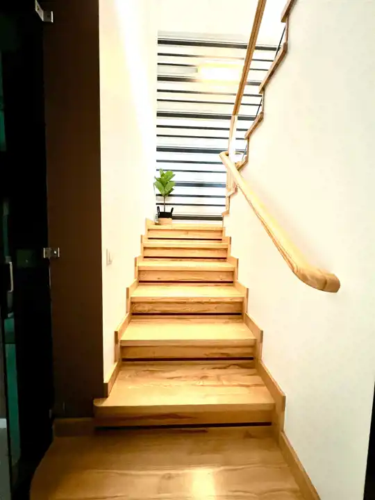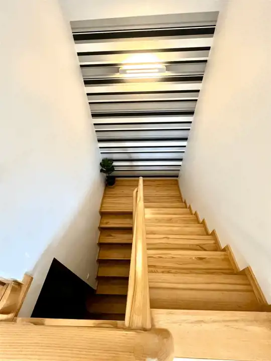 7. Klatka schodowa wykonana z litego drewna - jesion.