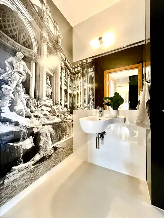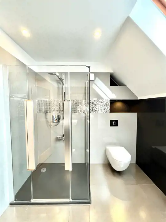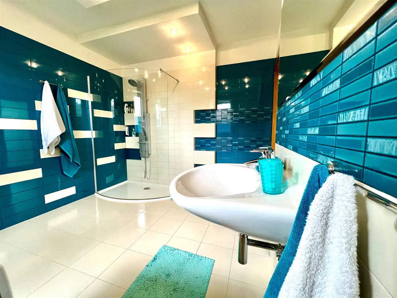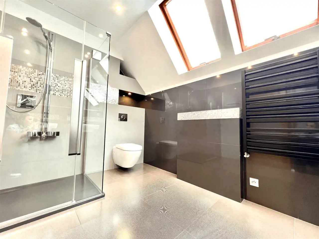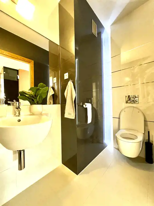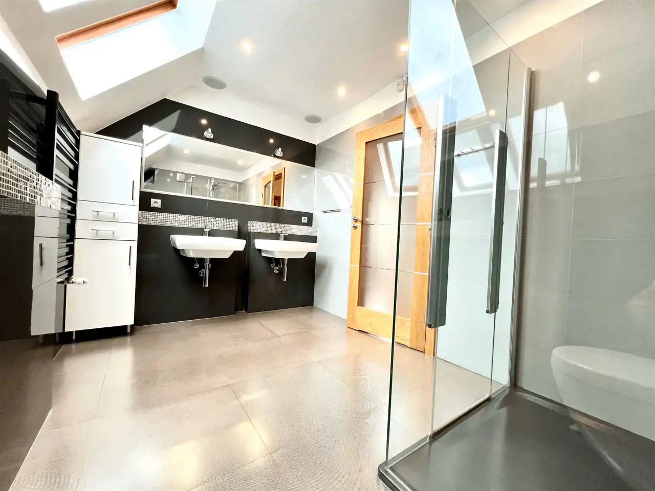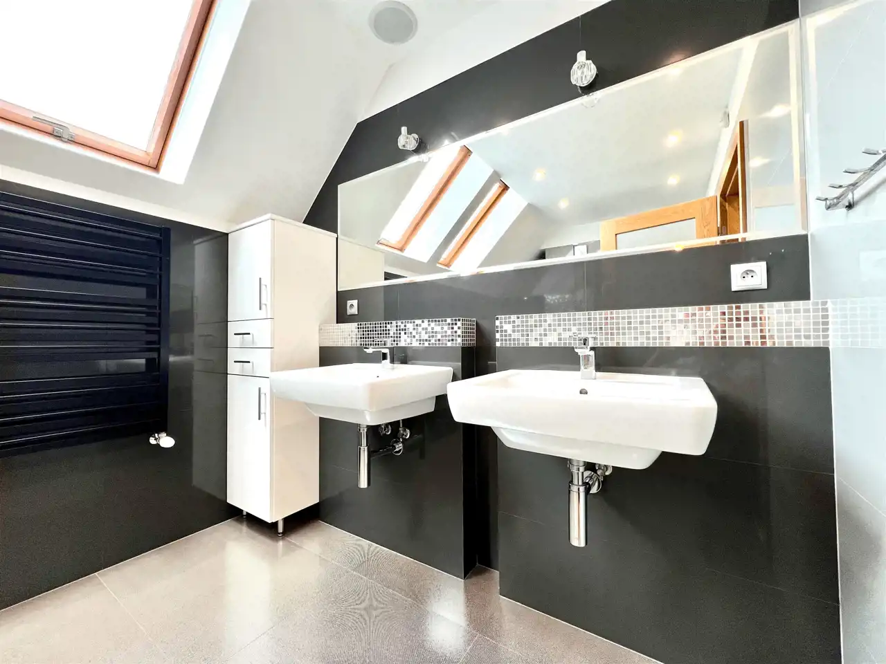 5. Łazienka z dwoma umywalkami i prysznicem,