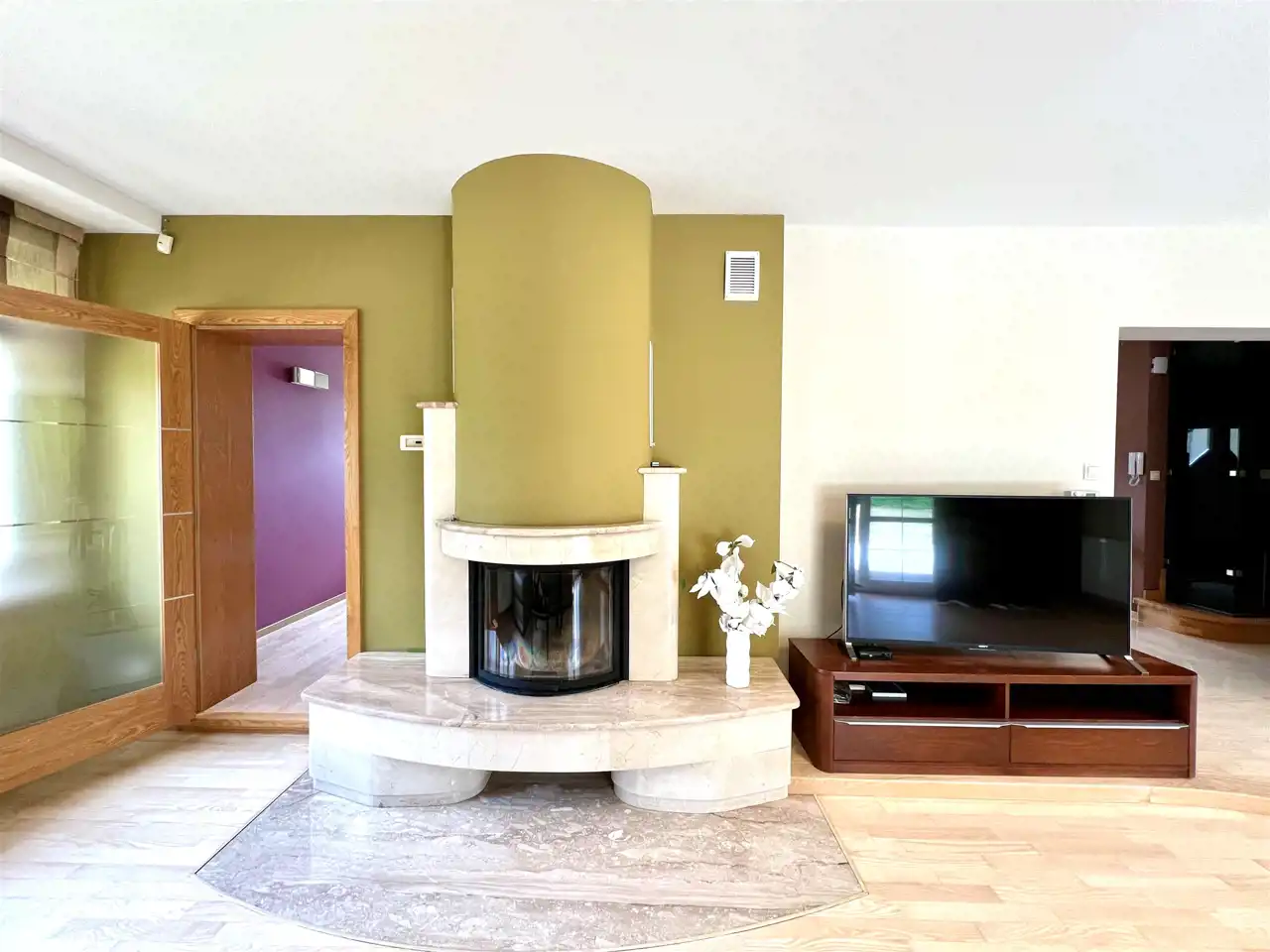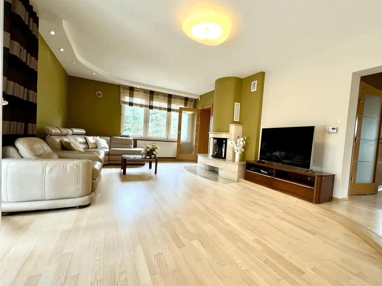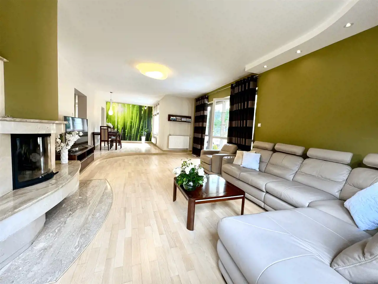 Parter domu został praktycznie zaaranżowany . Obszerny ponad 40 metrowy salon połączony z jadalnią robią wrażenie. Marmurowy kominek z płaszczem wodnym stanowi zarówno ozdobę jak i ekonomiczne rozwiązanie na zimne dni. Dodatkowo na parterze zlokalizowana jest także obszerna sypialnie, jedna z kuchni i dwóch łazienek wykończona wysokiej jakości płytkami.