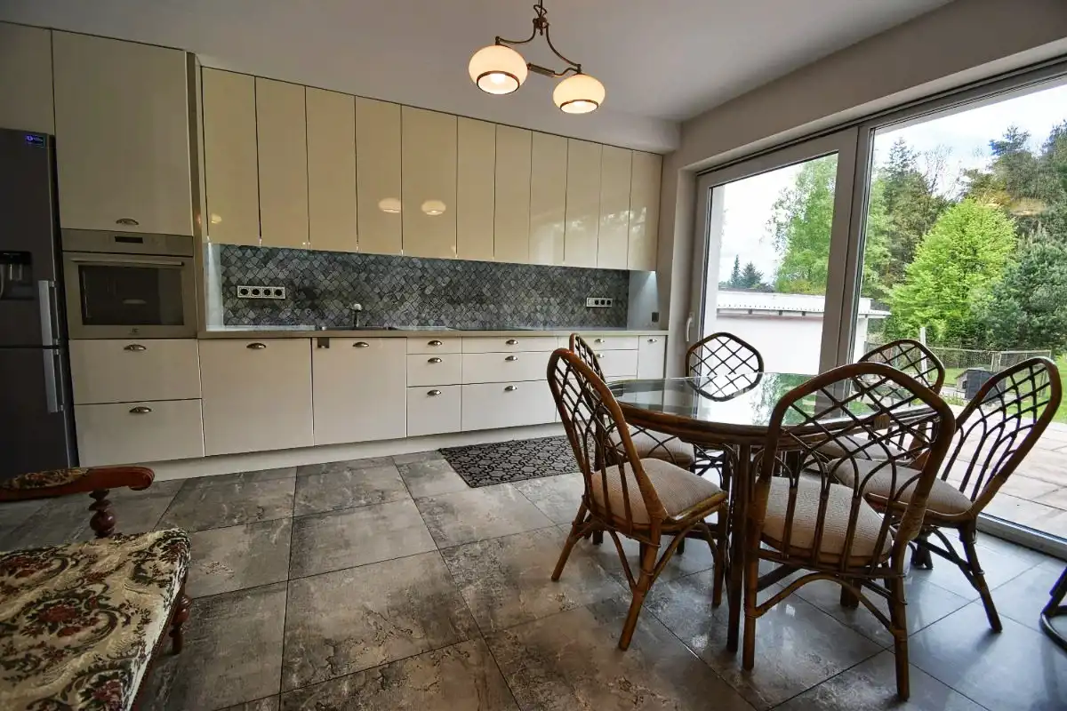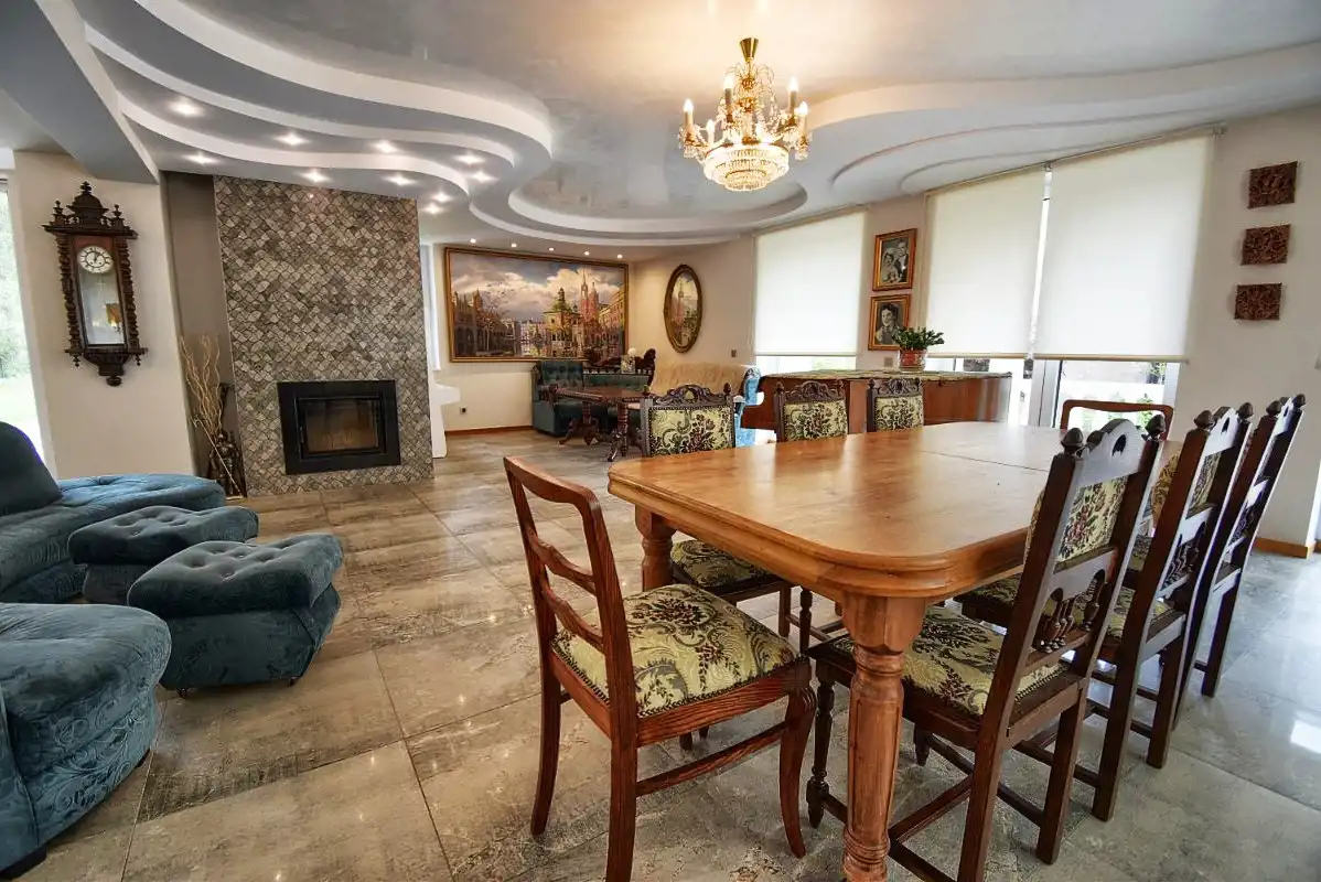 We present a charming, spacious house with a usable floor area of 265.94 m² (total area: 359.26 m²), situated on a 2,811 m² plot bordering directly with a forest – part of the Suchedniów-Oblęgorek Landscape Park buffer zone.