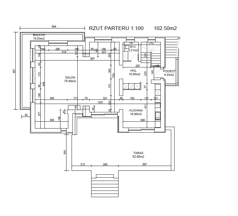 Parter – 102,50 m² + taras 52,80 m²