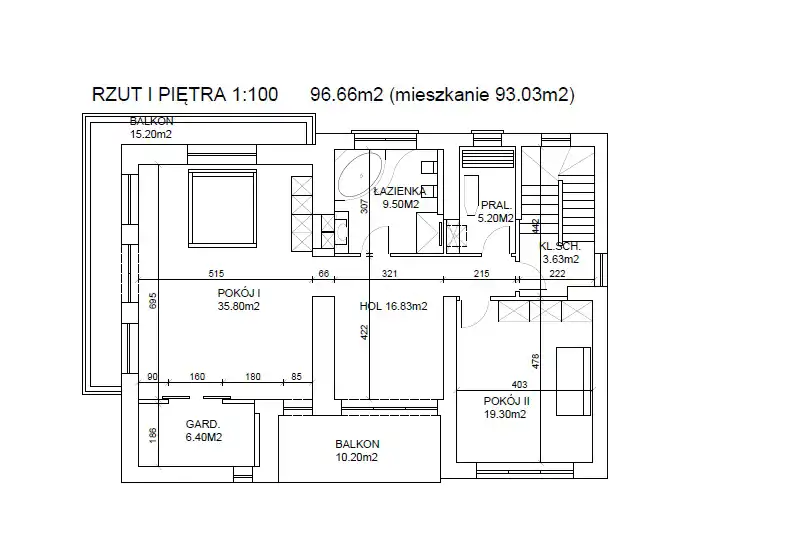 I piętro – 96,66 m²