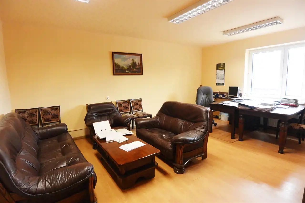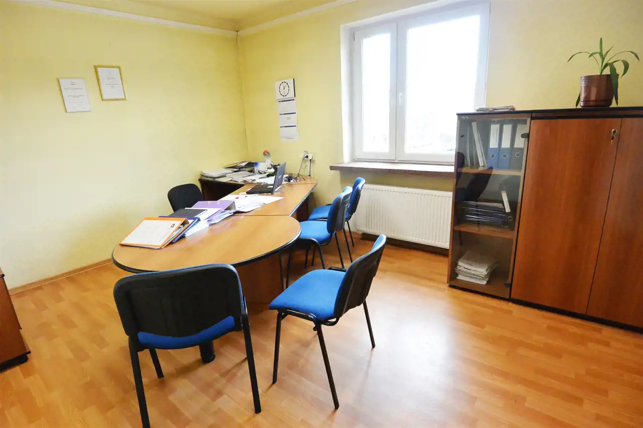 Building descriptions: The three-story (one underground and two aboveground) office-warehouse building (area of 565.62 square meters) includes changing rooms and social areas for production workers, fuel storage, and two central heating boiler rooms (one with two gas boilers, the other with a solid fuel boiler) in the basement. The aboveground floors contain a conference room, office and restroom facilities. The building was constructed with brick walls, insulated with styrofoam, and plastered. It was renovated in 2018.