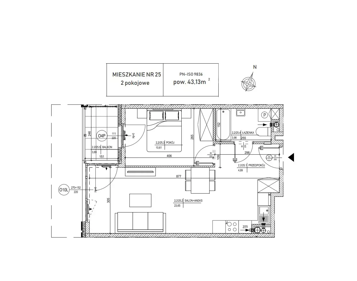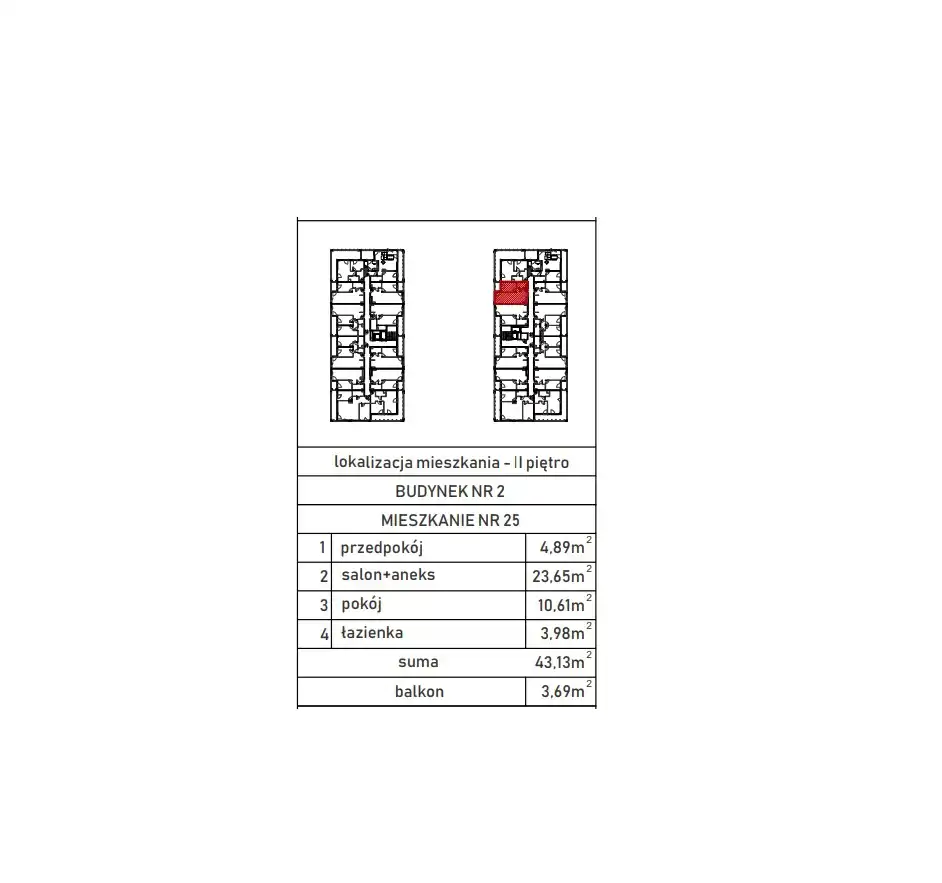 - Charakterystyka mieszkania 43.03 m2, 2 pokoje