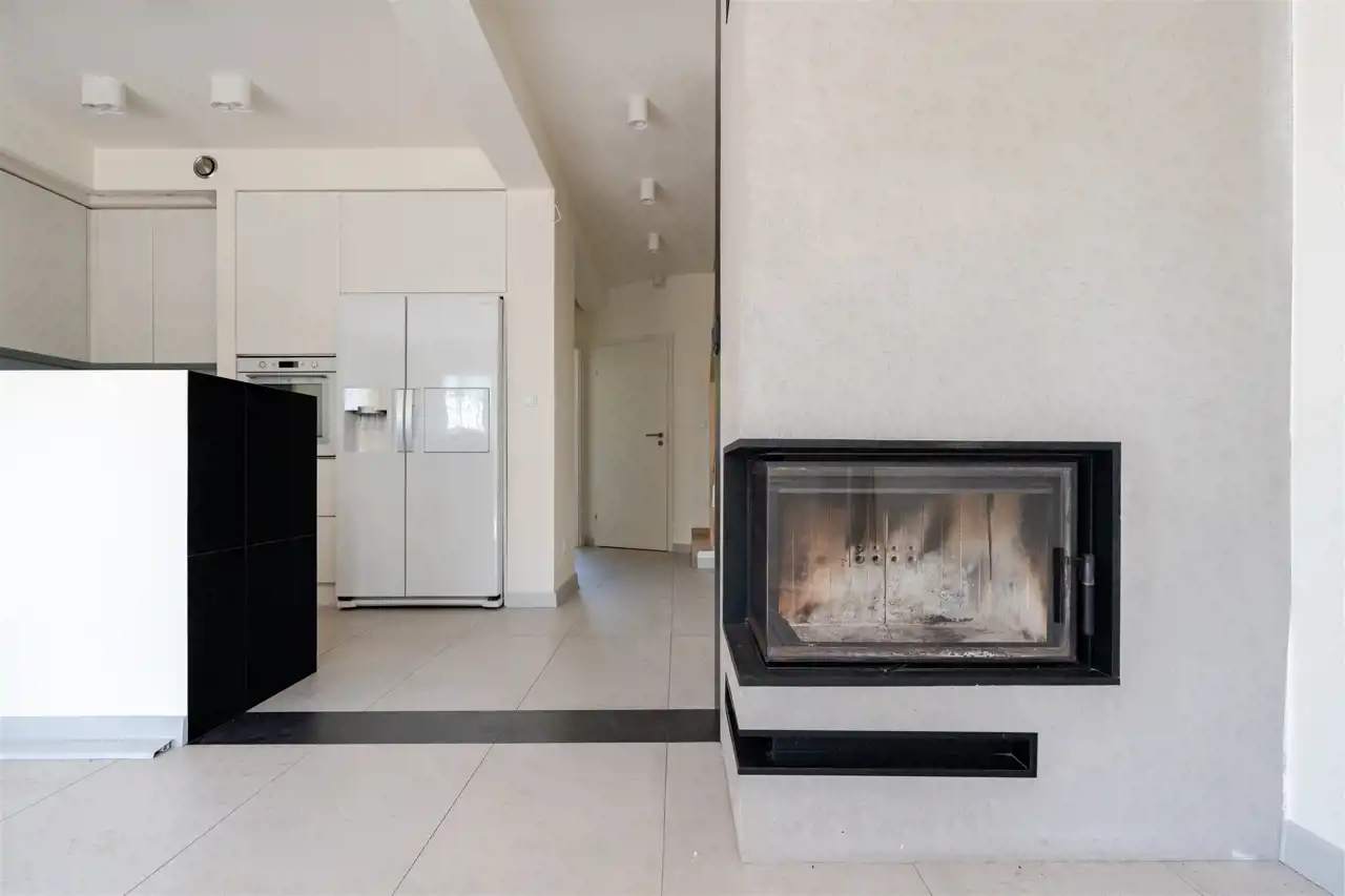 Komfort i ciepło: Ogrzewanie podłogowe na parterze oraz nastrojowy kominek w salonie zapewniają komfort cieplny i tworzą niepowtarzalny, przytulny klimat w chłodniejsze dni.