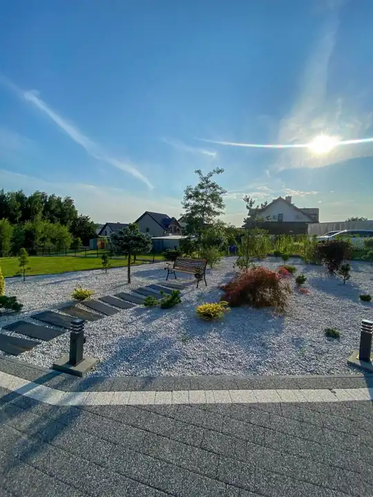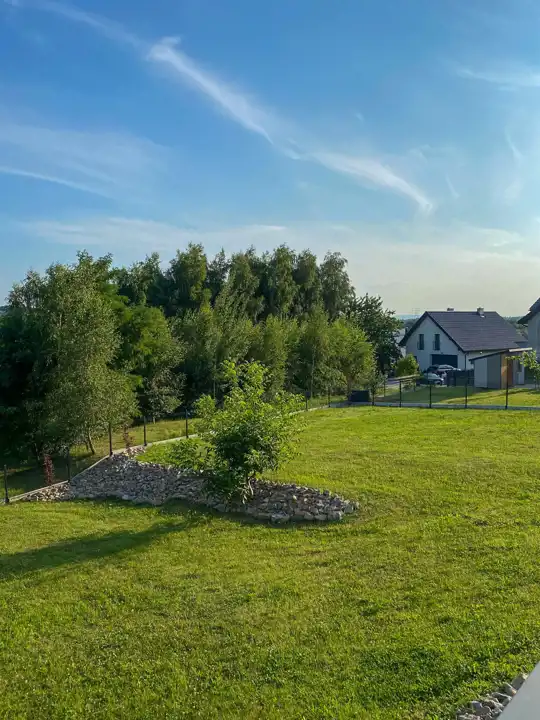Prezentowana nieruchomość jest położona na działce o powierzchni 25 arów, na lekkim wzniesieniu. Działka jest bardzo ładnie zagospodarowana, estetyczne nasadzenia i części dojazdowe harmonijnie przechodzą w bujną, naturalną zieleń. Działka jest ogrodzona, otoczona nowymi domami jednorodzinnymi. Front domu wychodzi na działki, które nie zostaną już zabudowane, co zapewni przyszłym właścicielom spokój i piękny widok.