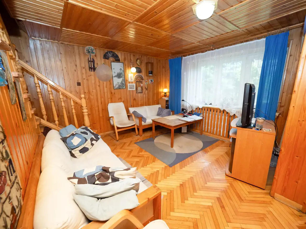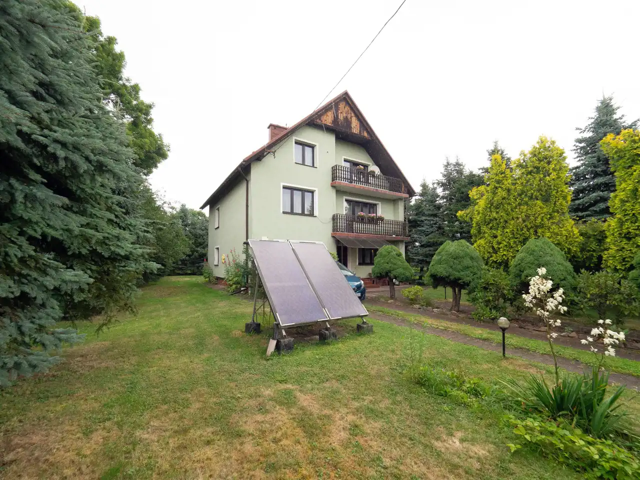 A detached house built in 1995 is located on an 11 ares, nicely developed plot surrounded by tall trees. It has 210m2 and this area consists of: