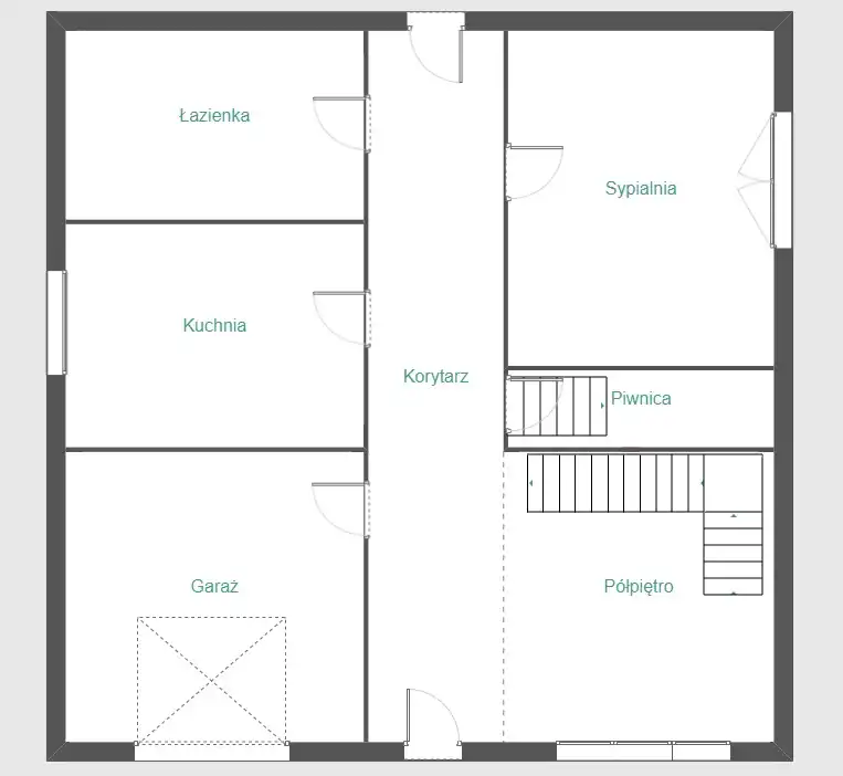 - korytarz z drugim wejściem do domu oraz wejściem do garażu