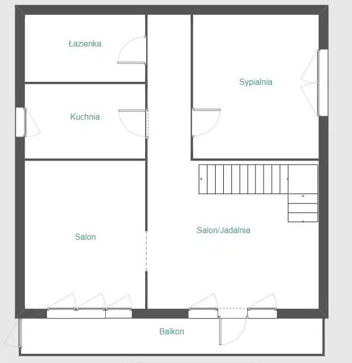 - 2 pokoje (jeden przechodni, ale możliwa zmiana układu na dwa nieprzechodnie) z wyjściem na balkon