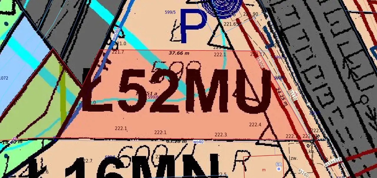 Nieruchomość jest w całości budowlana i objęta miejscowym planem zagospodarowania przestrzennego (MPZP) o symbolu Ł52.MU – tereny zabudowy mieszkaniowej i usługowej.