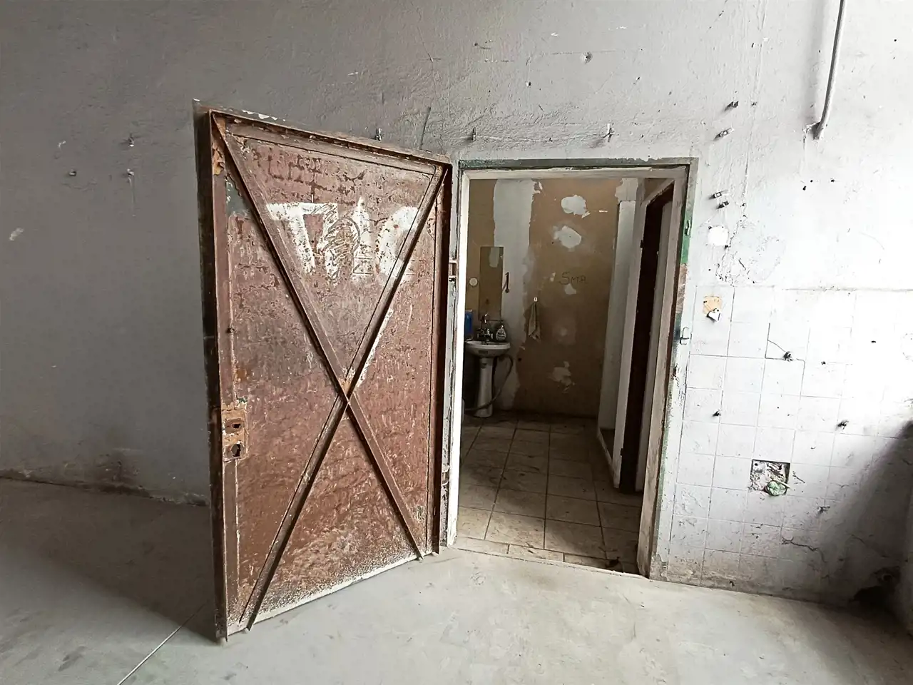 Szerokie stalowe drzwi umozliwiajace wyjazd nawet samochodem typy TIR