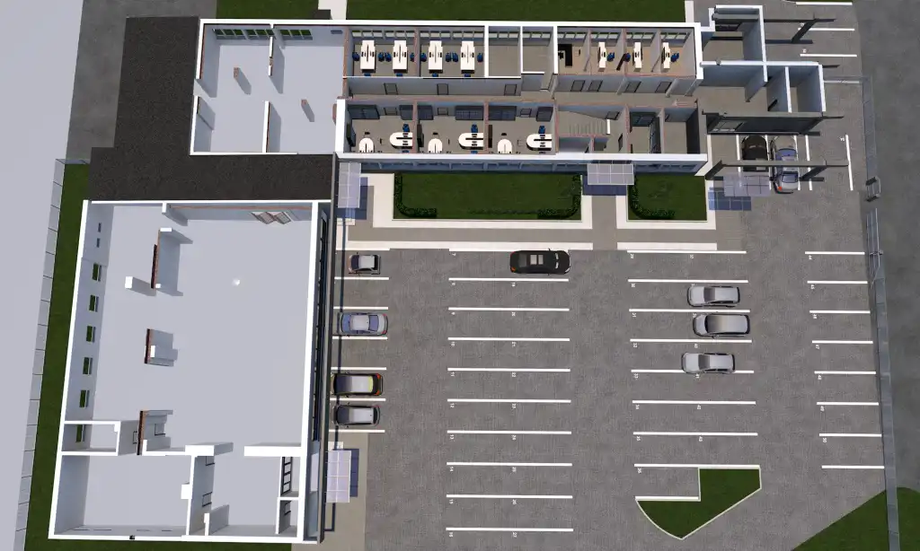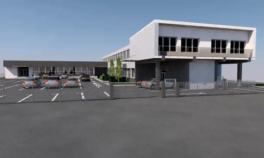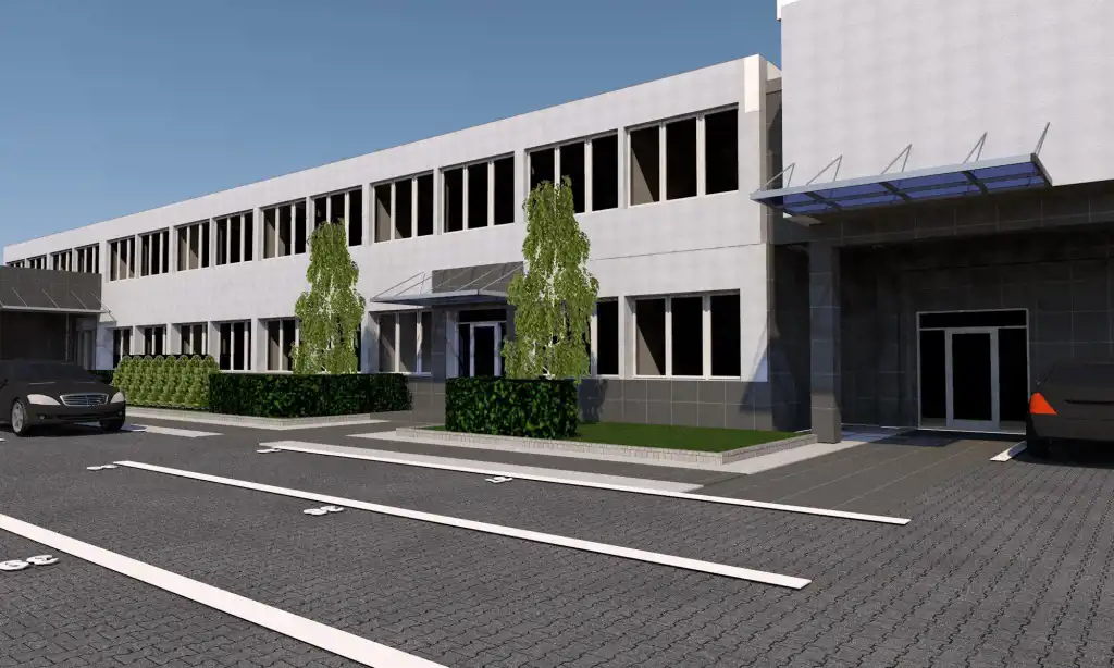 Nowoczesny. Dwukondygnacyjny. Znajduje się na terenie ogrodzonym. Przed budynkiem ok. 60 miejsc parkingowych.