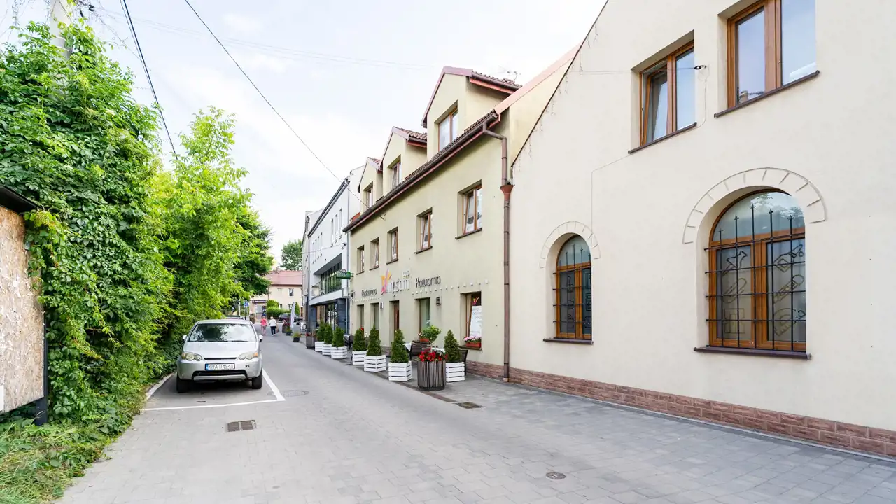 Ogólnodostępne miejsca dla klientów przed budynkiem lub duży Parking za budynkiem.