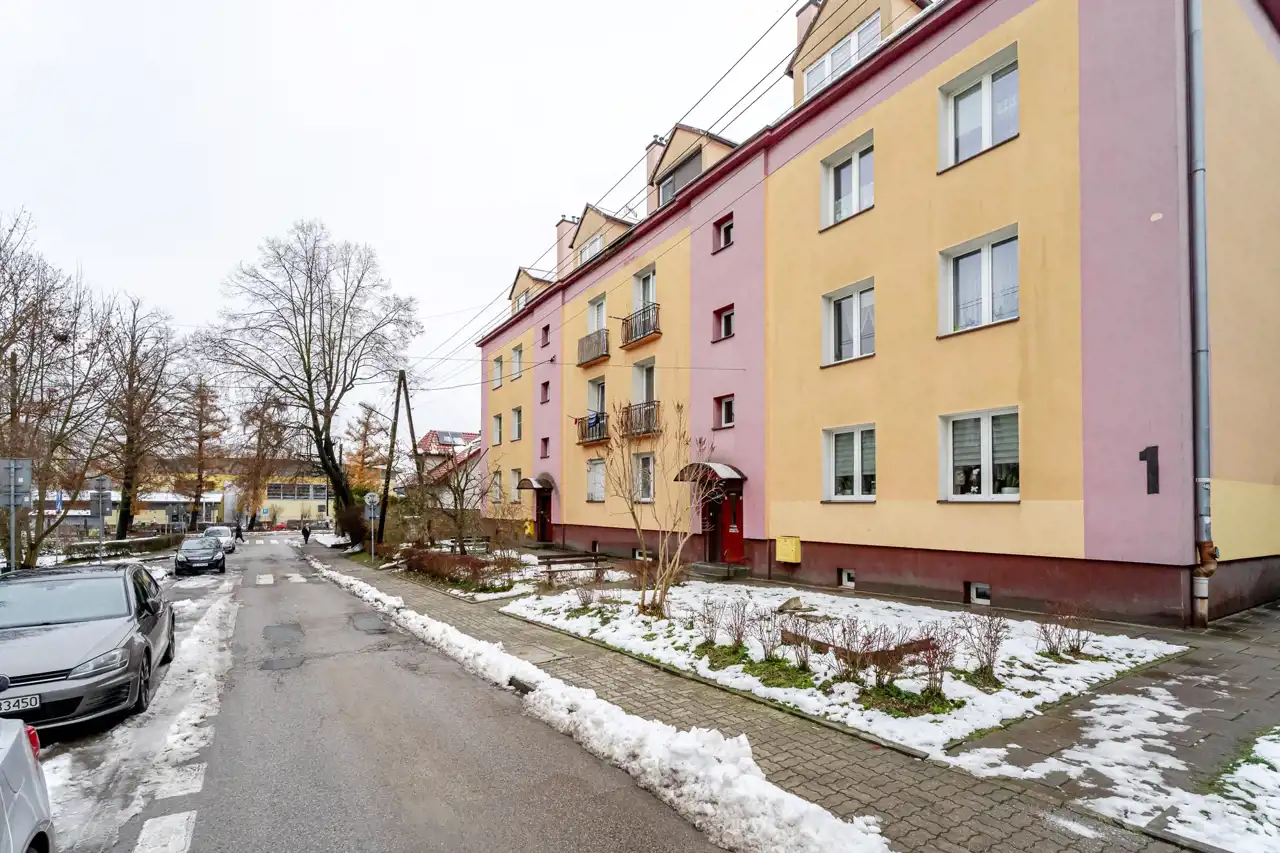 Mieszkanie 38 m² – Skawina, ul. Pułaskiego. Mieszkanie znajduję się na 2. pietrze w bloku.