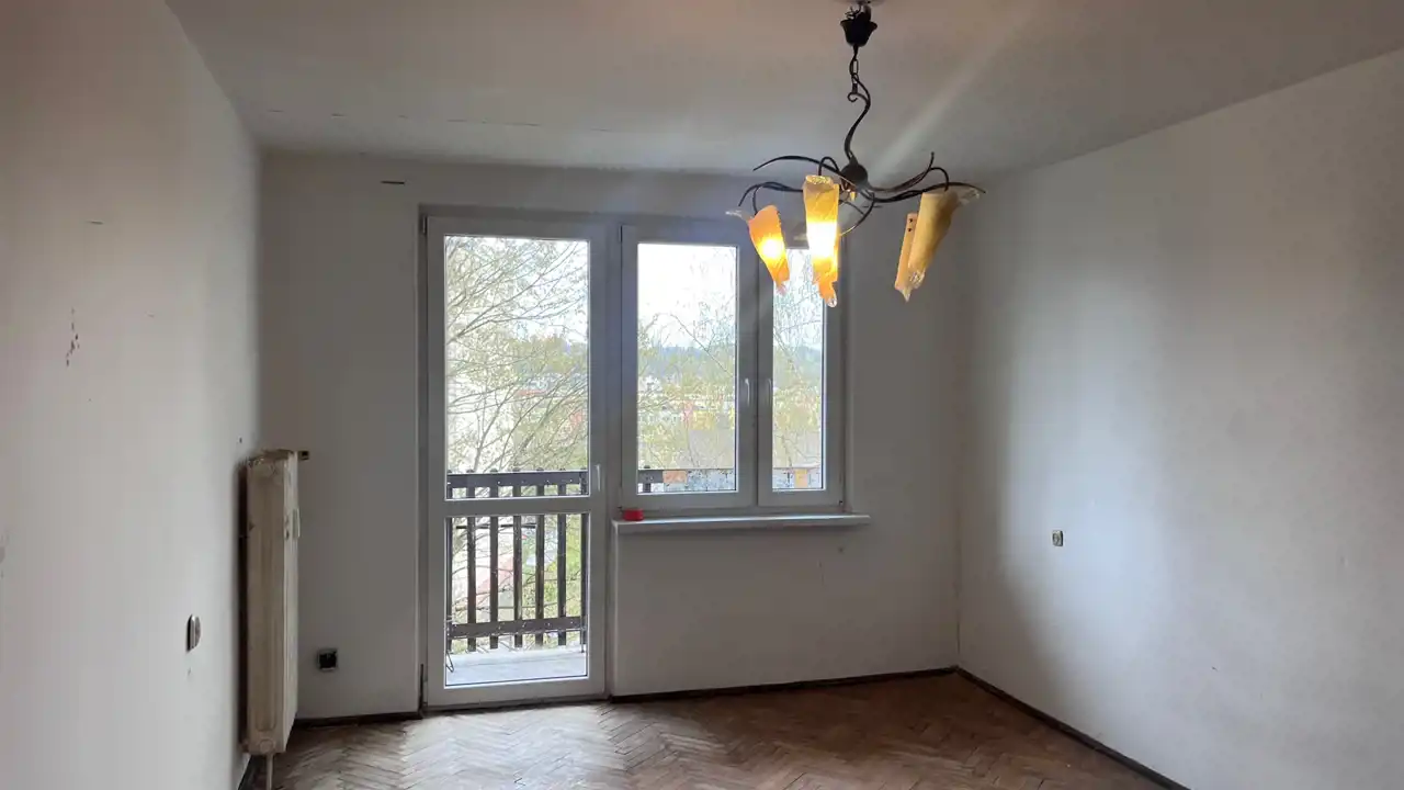 - przestronnego pokoju / sypialni z wyjściem na balkon,