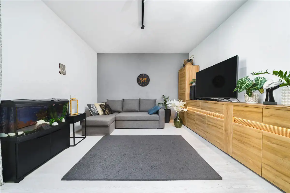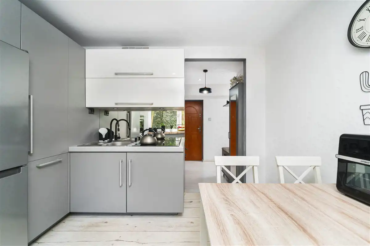 Gotowe do zamieszkania 2-pokojowe mieszkanie o powierzchni 53,86 m2, z balkonem, mieszczące się na pierwszym piętrze, w centrum Skawiny, na ulicy Wesołej.