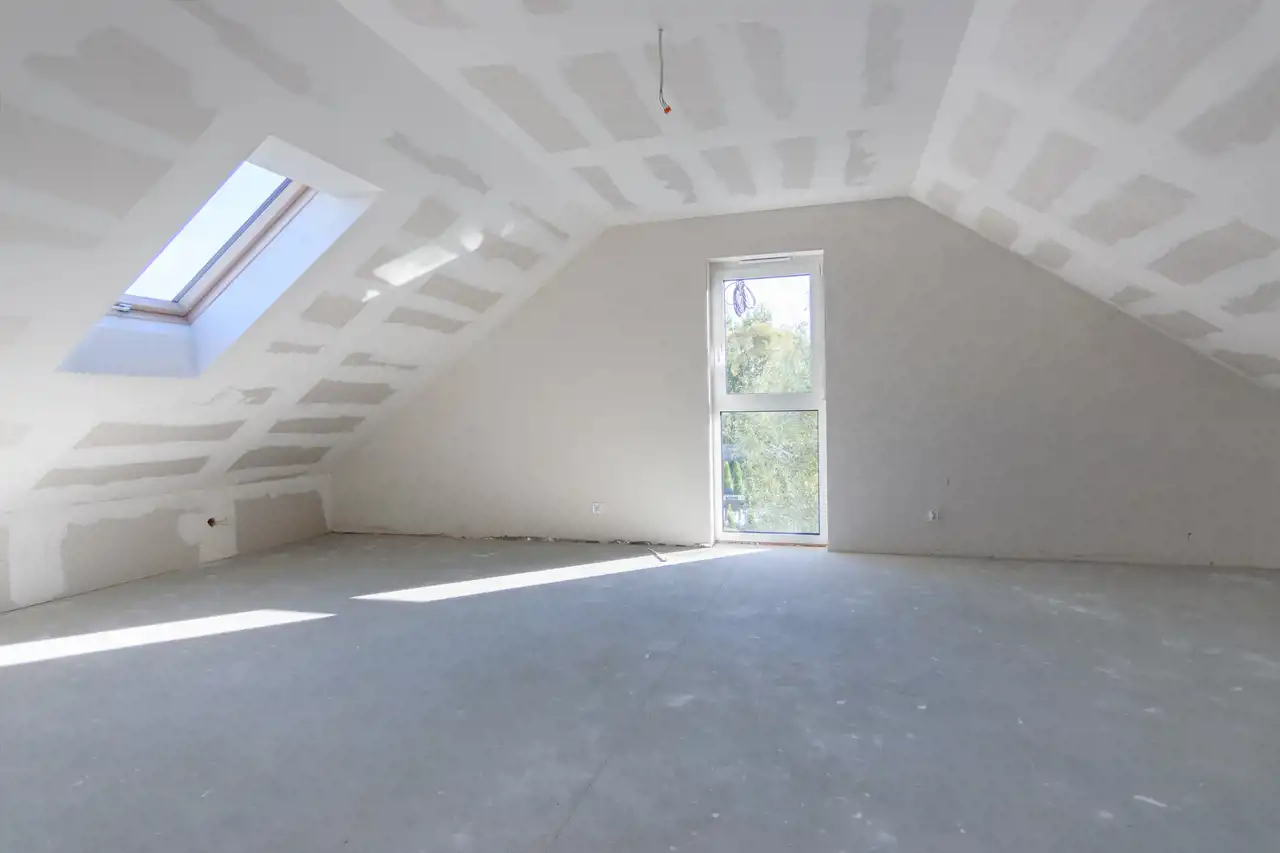 poddasze 69m2 (w tym 39m2 powierzchni użytkowej) z wylewanymi schodami lub do własnej aranżacji.