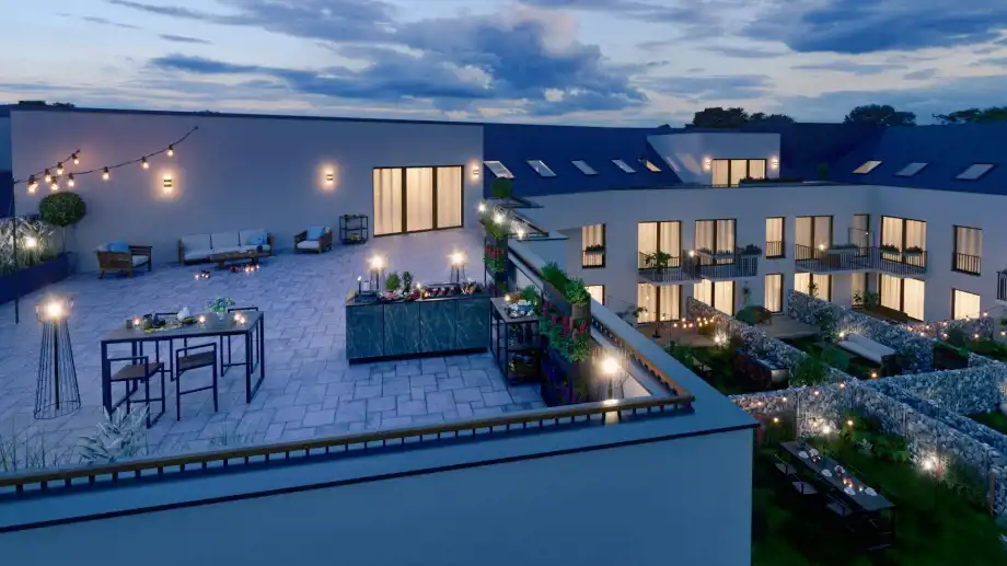 W ofercie wybór spośród 67 mieszkań w metrażach od 31 – 105 m2. Mieszkania posiadają przestronne balkony lub zielone tarasy, a na najwyższej kondygnacji zaprojektowano 9 penthousów z widokowymi tarasami o powierzchni nawet 130 m2.