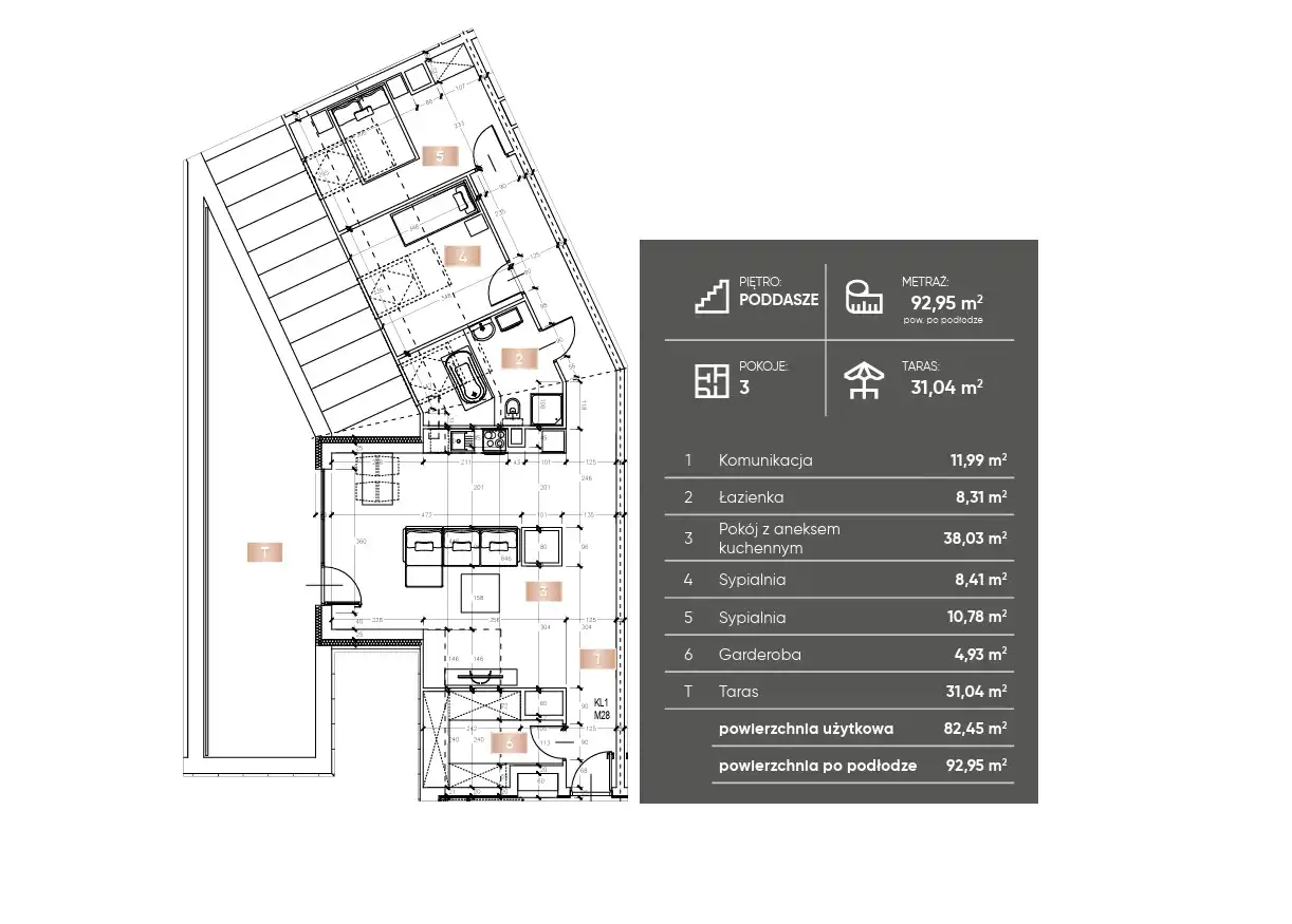 - Charakterystyka mieszkania 92.95 m2, 3 pokoje