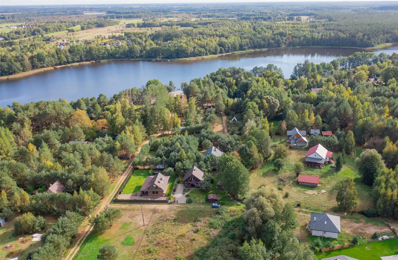 Doskonałe otoczenie – nieruchomość położona jest zaledwie 150 metrów w linii prostej od jeziora, w malowniczym otoczeniu lasu i innych domów, co zapewnia prywatność i bliskość natury.
