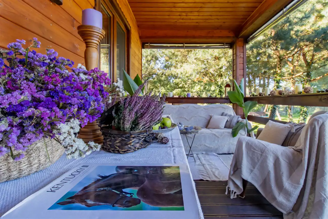 Malownicza atmosfera przez cały rok. Posesja doskonale łączy uroki lata i zimy, oferując wyjątkową atmosferę przez cały rok.