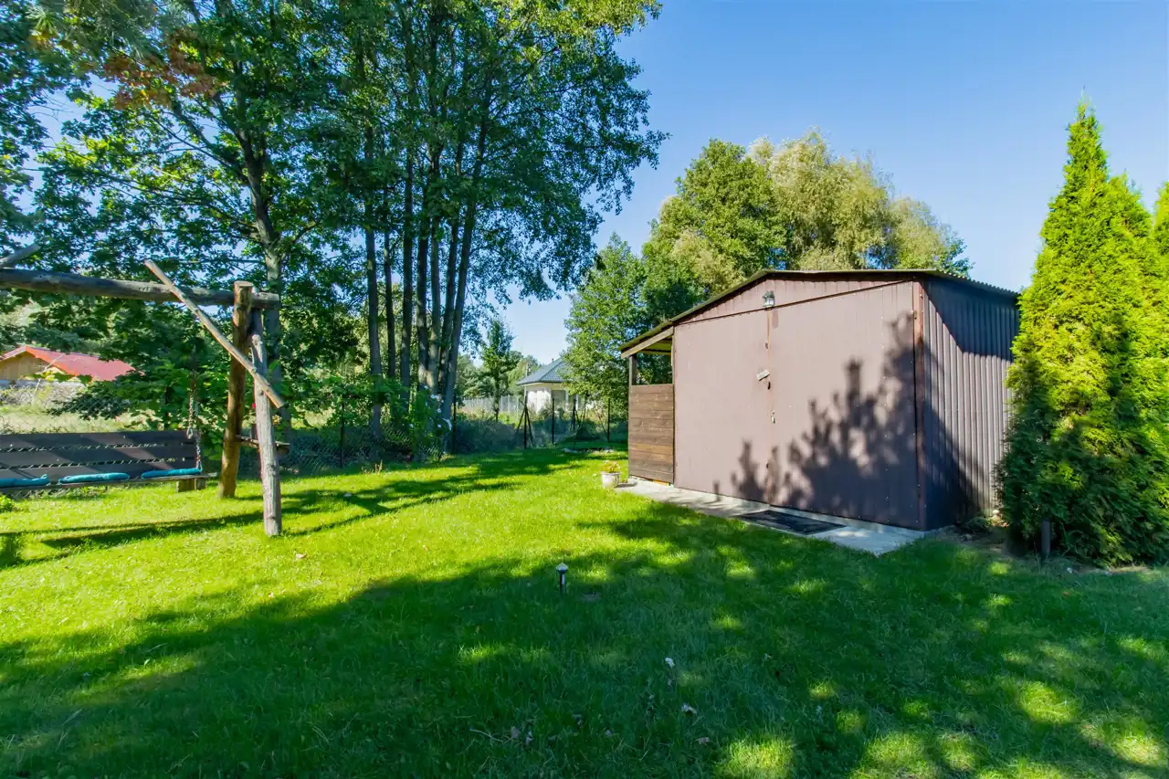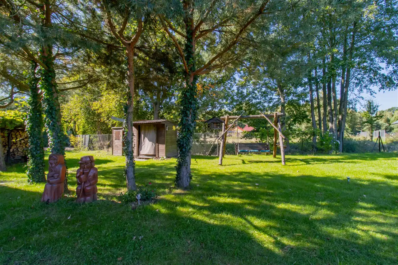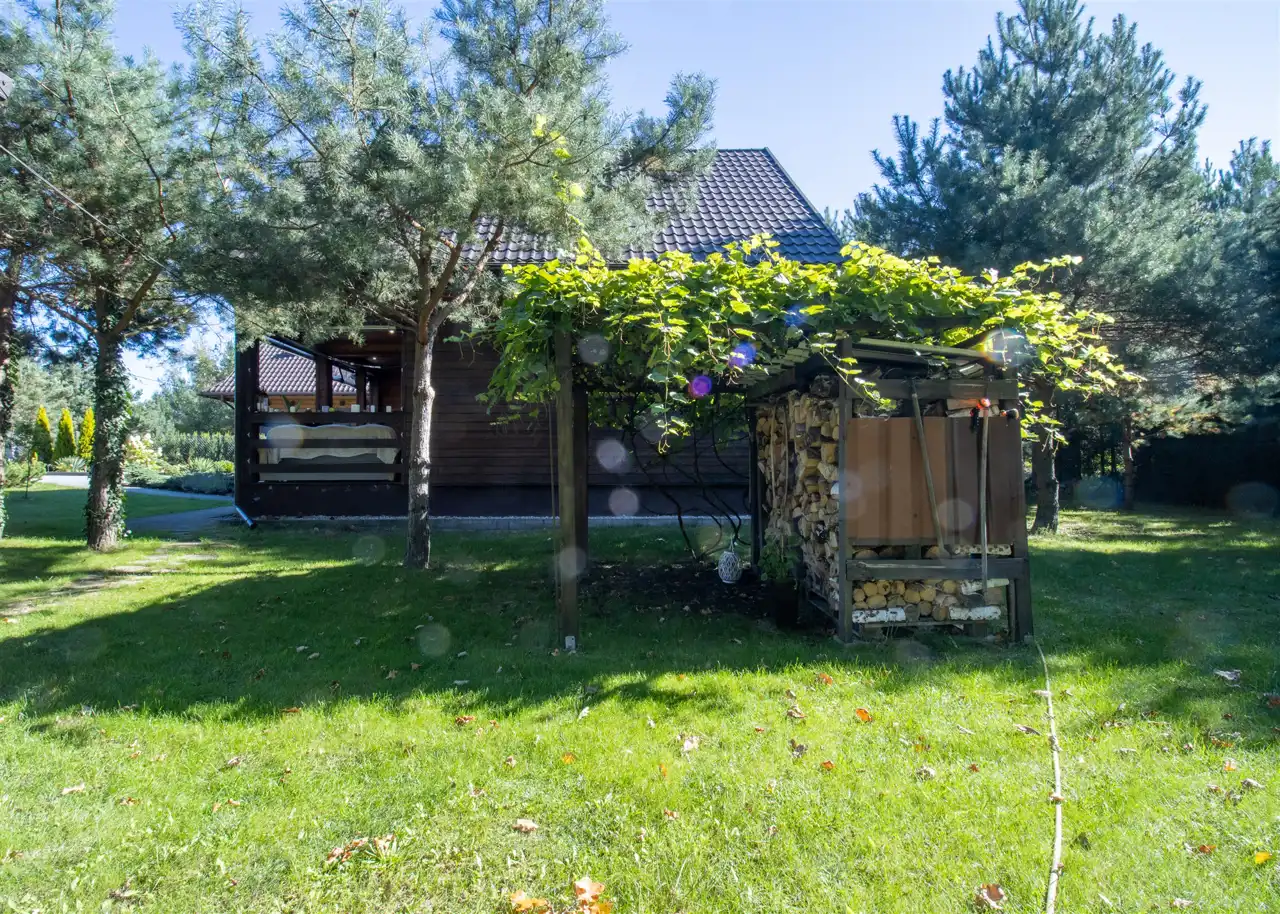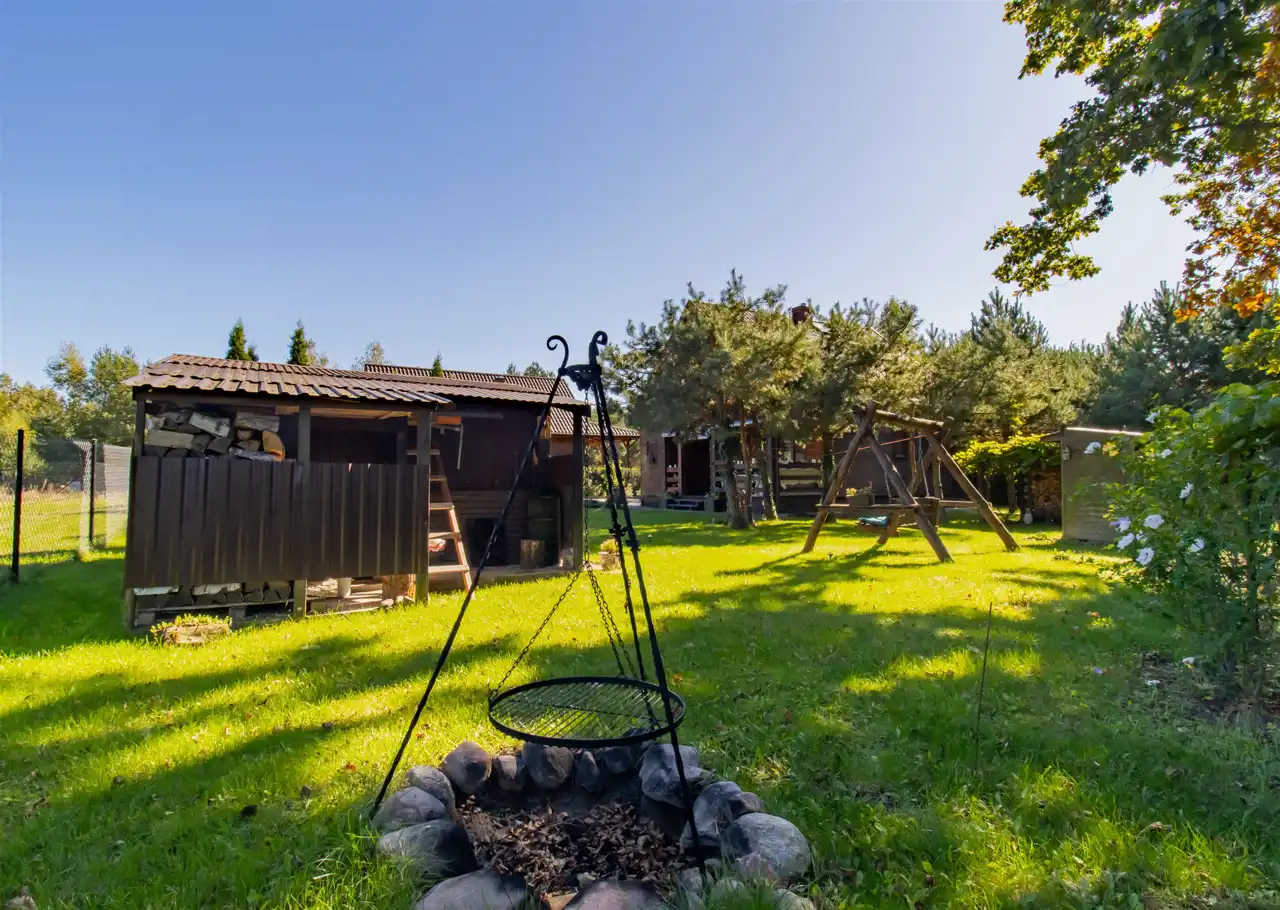 - Dodatkowym atutem nieruchomości jest rozbudowana infrastruktura na posesji — oprócz budynku mieszkalnego znajdują się tu również: garaż, wędzarnia, w pełni wyposażona kuchnia letnia, zewnętrzny prysznic oraz klimatyczne miejsce na ognisko, wiata na drewno opałowe z zadaszeniem.