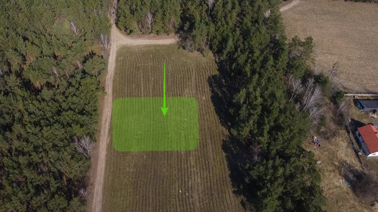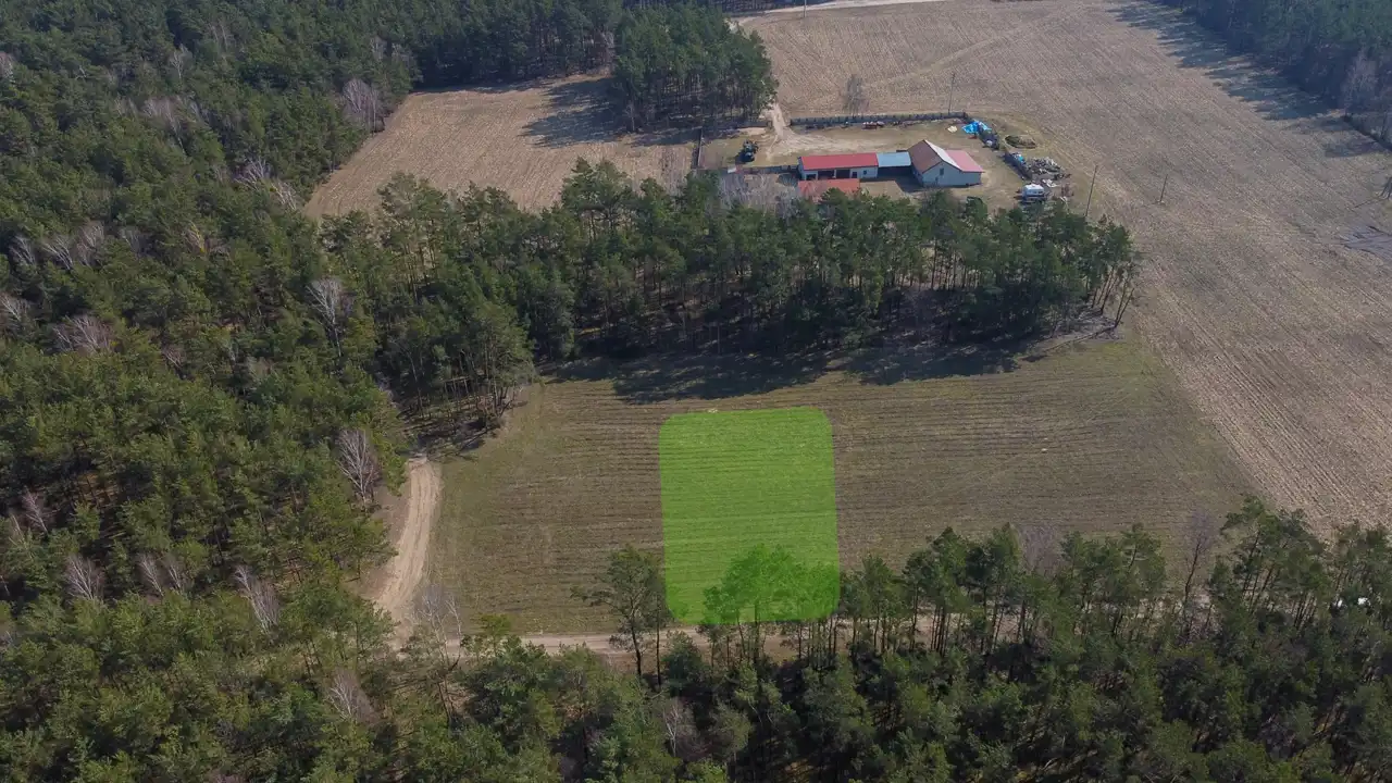 Dojazd do działki prowadzi gminą drogą gruntową na odcinku około 1,2 km od drogi asfaltowej, co w praktyce oznacza ograniczony ruch i spokojne sąsiedztwo.