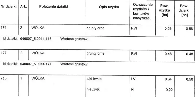 nr ewidencyjny 718 powierzchnia 0,56 ha cena 50 000 zł