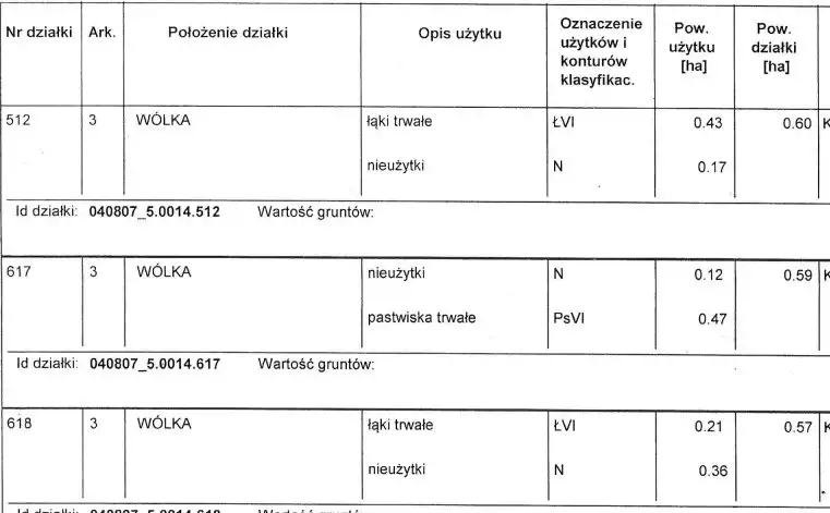 nr ewidencyjny 512 powierzchnia 0,60 ha cena 30 000 zł