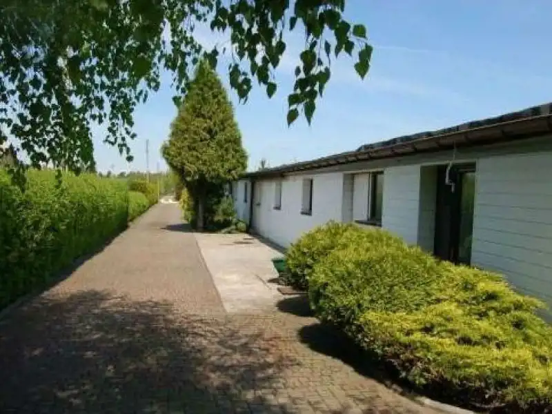 Działka o powierzchni 6800 m kw., na przedmieściu Skierniewic, przy ulicy wylotowej z miasta drogą wojewódzką. Wg planu zagospodarowania przestrzennego: działka o przeznaczeniu handlowo - usługowym. Zabudowę stanowi obiekt przemysłowo - mieszkalny o wymiarach 65x36 m. Ściany nośne betonowe, ocieplone, ściany działowe murowane, więźba dachowa drewniana, z pokryciem aluminiowym. Mieszkanie o pow. ok. 250 m kw. posiada 6 pokoi i 3 łazienki. Garaże na 4 samochody. Woda doprowadzona z wodociągu miejskiego i własnego ujęcia głębinowego. Odprowadzenie ścieków do szamba, z możliwością podłączenia do kanalizacji miejskiej w ulicy. Centralne ogrzewanie z własnej kotłowni. Teren wokół budynku zagospodarowany zielenią.