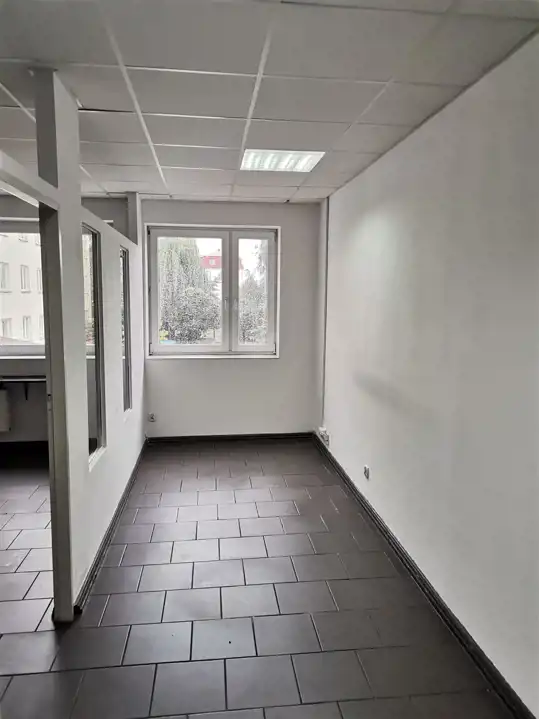 Lokal biurowy położony na piętrze budynku biurowo usługowego w południowej części Skierniewic. Jedno pomieszczenie biurowe o łącznej powierzchni 44m.kw. pomieszczeniu półścianką wydzielono pokój do pracy i pokój dla interesantów. W W dobrym stanie.