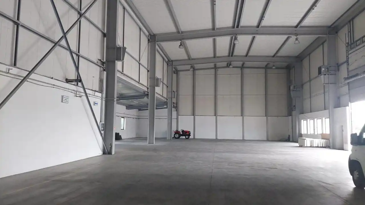 Przy hali znajduje się toaleta i w pełni umeblowana kuchnia i pomieszczenie socjalne.