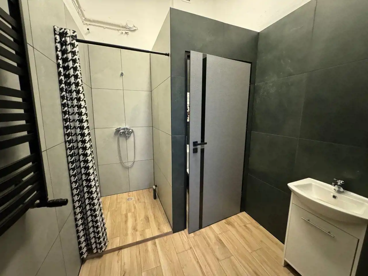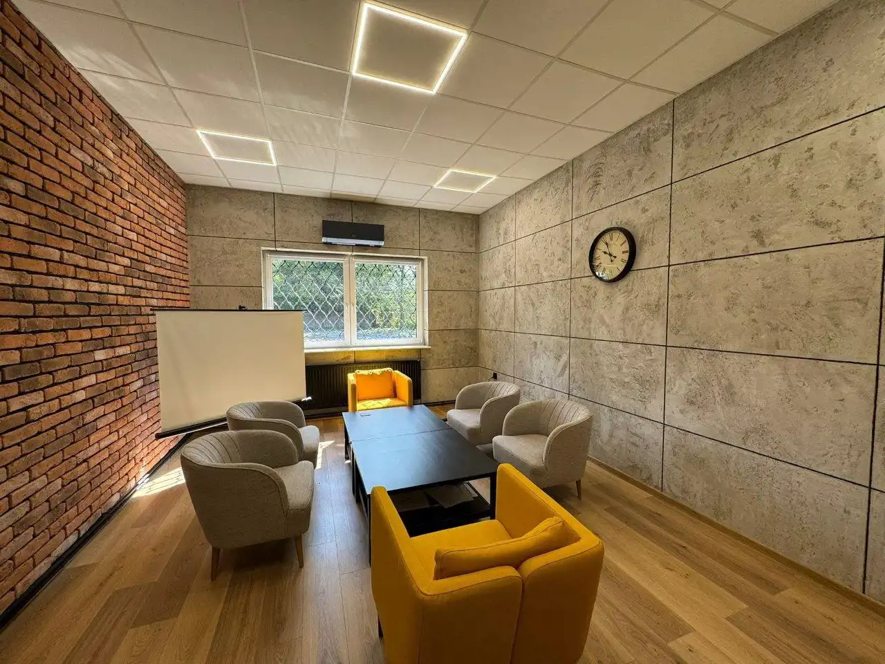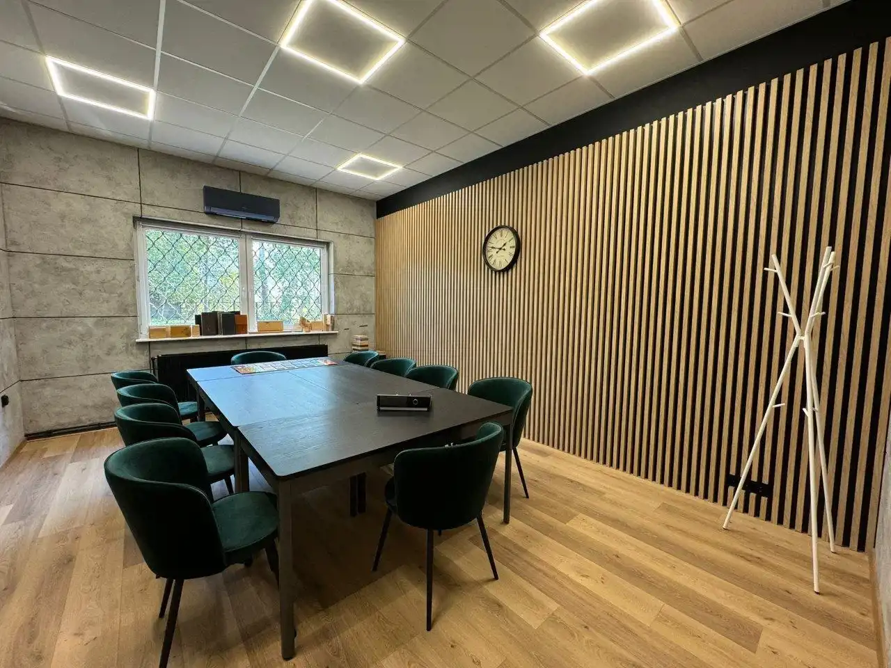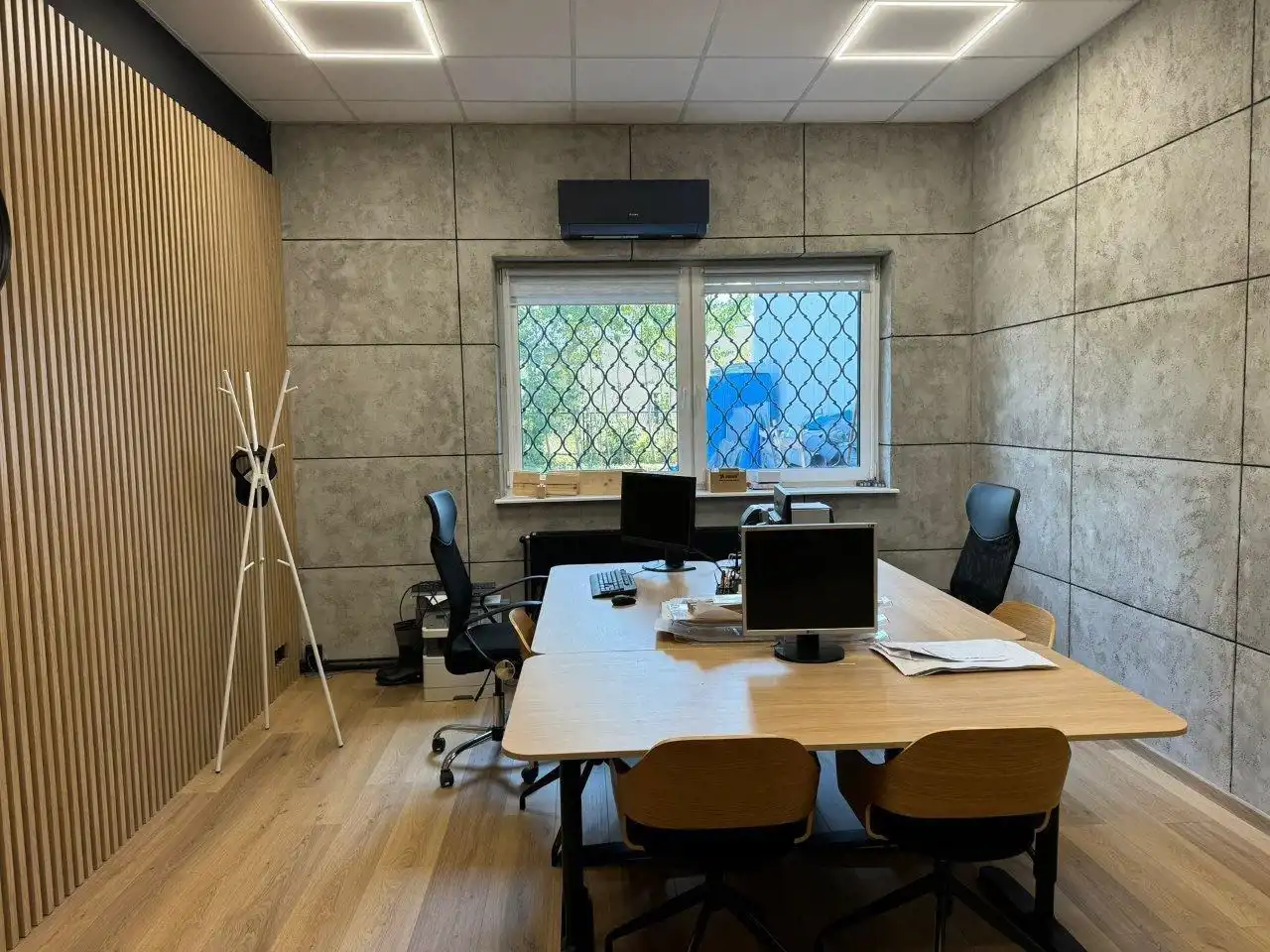 - W biurach i open-space podłogi panele. Sufity podwieszane, oświetlenie LED.